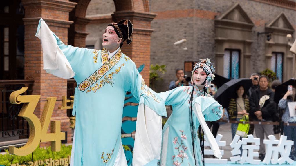 4月11日,第34屆上海白玉蘭戲劇表演藝術獎戲劇嘉年華演出亮相“今潮8弄”百年石庫門弄堂,8位白玉蘭戲劇獎獲獎演員呈現京劇、崑曲、越劇、淮劇等多劇種優秀劇目。演出打破傳統劇場邊界,讓傳統戲曲與百年建築交融,為市民帶來沉浸式文化盛宴。