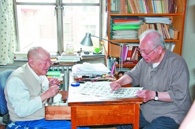 一聽是找周老,我笑著對馬老說:“您不用費心。我現在就幫您聯繫,我跟周老比較熟,每年我都要去看他兩三次。他家阿姨還是咱們四川人呢。”說完,我便拿起手機給周老家打電話。湊巧是那位四川阿姨接的電話。一聽是我,這位老鄉很是熱情。我告訴她來自四川的馬識途老先生這幾天想去拜訪周老,不知周老是否有時間。老鄉讓我稍等一下,她現在就去問問周老。幾分鐘後,她在電話中回复:周老隨時歡迎馬老先生到訪。馬老一聽很高興,跟我說越快見面越好。就這樣,我和阿姨約好:5月24日上午,我們去家中看望周老先生。
