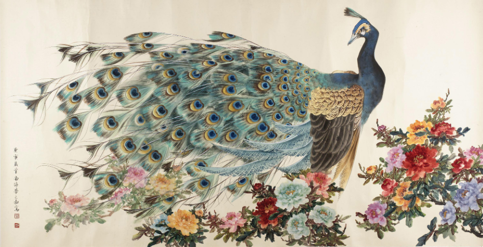 《富貴孔雀》 水墨設色絹本橫幅 95×176cm 2010年 勞允澍 勞氏傳承「隔山派」技法寫牡丹 二人作為「隔山派」第四代傳人,寫牡丹尤其出色。古人云:「牡丹花品冠群芳」,此花作為花中之王,雍容艷麗的花身象徵了吉祥富貴、繁榮昌盛。牡丹統領群芳,寓意禎祥,因而成為勞氏夫婦的摯愛。他們居於加拿大時,更在花園種植過百株牡丹,花開之時,家中花團錦簇,使人賞心悅目。這片花卉亦成為二人作畫的主要素材。雖然都以牡丹為主角,但二人的繪畫手法則有很大區別。勞允澍的牡丹以意立象,以形寫神。花朵具有提煉、概括的造型。其筆墨流暢,線條具韻律,加上設色艷麗,畫面別具感染力。 《墨竹》 水墨紙本立軸 60×29cm 2010年 勞允澍 勞允澍自幼受文藝氣息薰陶,幼隨林建同習山水水墨,又向姑丈羅叔重習書法,後隨誼父牡丹王張韶石習花鳥,開啟了寫牡丹的藝術之路。張韶石為「隔山派」始祖——居廉的再傳弟子,勞氏在張韶石的指導下,掌握「隔山派」獨創的積水撞色、上粉技巧,並將之應用於寫牡丹、花鳥畫之上。寫意派的特徵就是不拘泥於自然形象的細節刻畫,從勞氏的畫作可見,他擅用粗放的筆墨,畫出對象的形神。尤其花卉作品,花葉用色濃重且亮麗,筆墨變化生動自然,使得花卉具有漸層的濃淡變化,墨氣清雅之餘,構圖又不失氣勢。 《國色天香》 水墨紙本直幅 105×60cm 2008年 勞允澍 夫妻合繪數十載 相反,譚美容繪畫的作品則以工筆畫的「盡其精微」為主要創作手法,力求形似,因此非常講究畫面呈現出來的細節與真實感。其中花卉顏色具有明顯的濃淡變化,所畫的鳥類嚴謹細膩,真實自然,使人過目難忘。兩種手法各有特色,夫婦二人後來開始合繪畫作,各取自家所長,因此作品形神具備。有時勞氏會先畫上牡丹作底,為作品設下基調,後由譚氏畫上精細的禽鳥,栩栩如生的動物立於意韻非凡的花卉之上,構成工筆、意筆相互融合的創世佳作。二人創作數十載,繪畫路上一直相互指教,互相評價,形成一種作畫的默契,創作出許多工意筆牡丹,而尤多孔雀、牡丹巨製。他們過往亦曾共同舉辦畫展,多年來都是一起進步與成長。作品如《洛陽春色》《富貴和平》《錦繡滿華堂》便是合繪作品。 《富貴和平》 水墨設色紙本橫幅 68×131cm 1978年 二人合繪 《錦繡滿華堂》 水墨設色絹本橫幅 90×162cm 2008年 二人合繪 《洛陽春色》 水墨設色紙本橫幅 75×64cm 2011年 二人合繪 譚氏工筆細描花鳥蟲魚 譚美容早年曾向不少名師習藝,包括李鳳公、粱伯譽、劉醴平、張韶石、唐鴻、周士心等,各家都有獨特長處,有些擅畫花鳥、有些擅畫山水。當她某個階段想鍛鍊某個題材的畫工,便會向不同老師求教,使得畫畫技巧不斷提升,也漸漸發展出現今的風格。因為畫工隨著不同老師指導也日益精進,多年來畫過無數幅作品,譚氏有時候會重寫過往的作品,就如《彩龍》般,1966年的版本較為簡單,九年後重新繪製相同畫作,勾勒出來的線條更為細膩,龍身更顯靈活與氣勢,這都是畫工進步的一大表現。1973年後,譚氏復隨楊善深習嶺南畫法,並向唐鴻深造宋元工筆畫法,此時,她的畫風已具備自己的面貌,其中一些作品更獲楊善深為其題字,如《富貴長相依》便獲題「美容女弟此製,清潤秀逸,深得南田(惲壽平)法也。」可見這位嶺南畫派名家對譚氏作品的賞識。 《彩龍》 水墨設色立軸 131×68cm 1975年 譚美容 除了花草、禽鳥外,走獸、蟲魚等亦是譚氏的主要取材。為求畫出來的動物更逼真,她都會親身走入自然觀察。她捕捉動物剎那間的神態,仔細看清楚動物身上的皮毛、肌理,並拍下照片作記錄。她利用描繪及渲染等多種技法,與巧妙的構圖相結合,後再繪製成畫。作品《五尾金魚》便是她其中一幅得意之作,此畫之前曾被愛畫之人購入,但譚氏又輾轉買回自己的作品。她認為那是一幅不可多得的作品,只有那個時刻的所見所感才能使她畫出這樣細緻的金魚,而且耗時很長,因此她還是不捨將這難得的作品售出,而是留下來收藏。如今重新展示在展覽廳裏,讓更多人能欣賞到這幅作品。 《雙魚圖》 水墨設色立軸 132×67cm 1975年 譚美容 勞氏出任了8屆,共16年的安省中國美術會會長;通過許多籌款活動,以及多年來向諸多中港台名家徵集作品,最後在多倫多創建安省中國美術館,現任安省中國美術會永遠會督,而譚氏亦是永遠名譽會長。該美術館成北美洲唯一政府資助中華藝術機構,他們接待了無數中外畫家,推廣了多元文化藝術交流,致力推動藝文發展。勞允澍夫婦多年來一直孜孜不倦地創作,在中、港、加多次合辦牡丹畫展,以各幅精品力作將「隔山派」畫風發揚光大。 《富貴長相依》 水墨設色紙本立軸 98×48cm 2010年 譚美容 楊善深題 來源:藝術香港