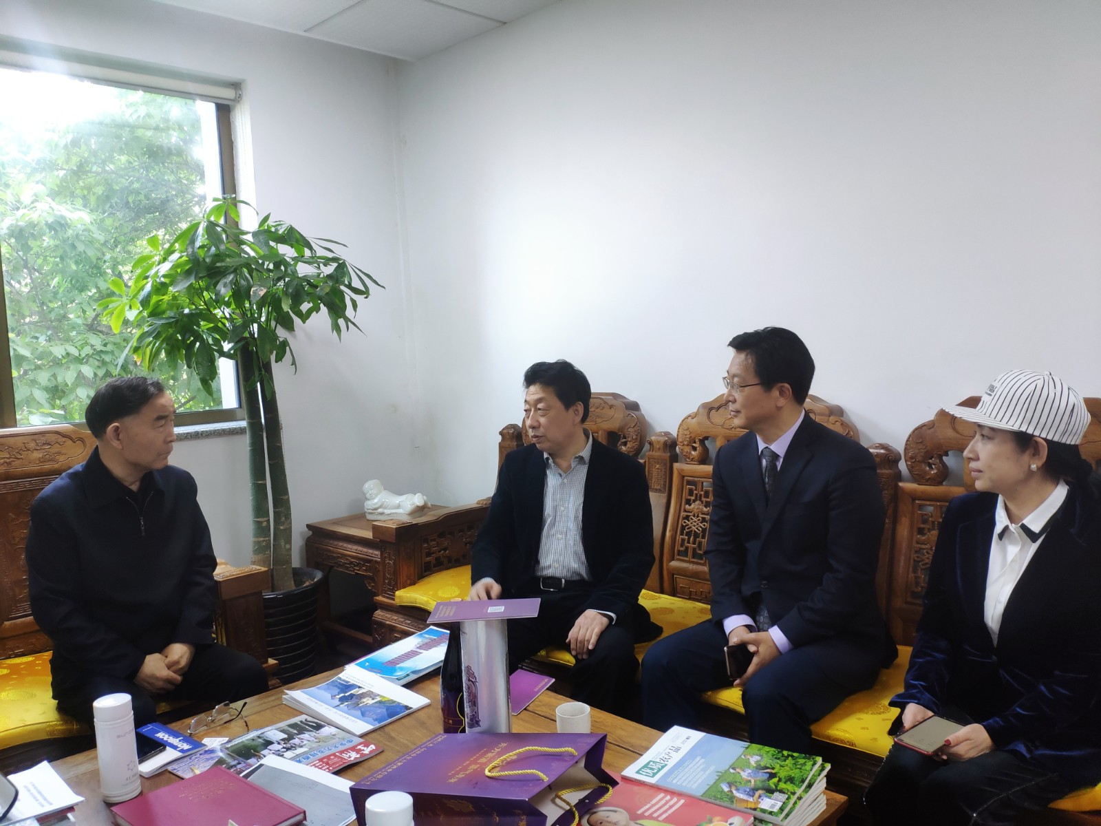 座談會現場,朱保成先生向張春生總經理介紹情況、高慶國董事長向張春生總經理介紹中國紫酒情況