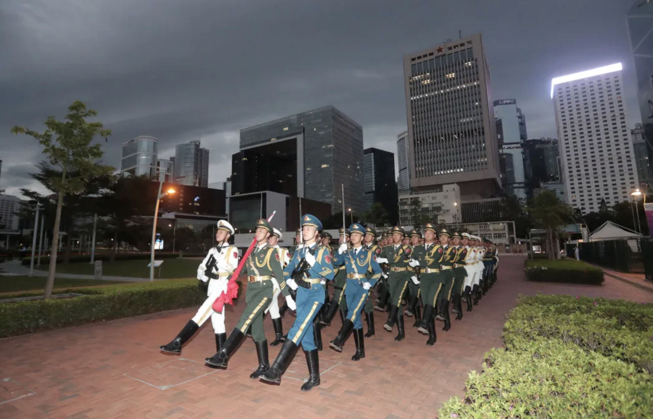 駐香港部隊舉行中區軍用碼頭升國旗儀式,充分展示了官兵威武文明的良好形象,充分彰顯了駐軍捍衛國家主權、安全、發展利益,維護香港長期繁榮穩定的信心決心。