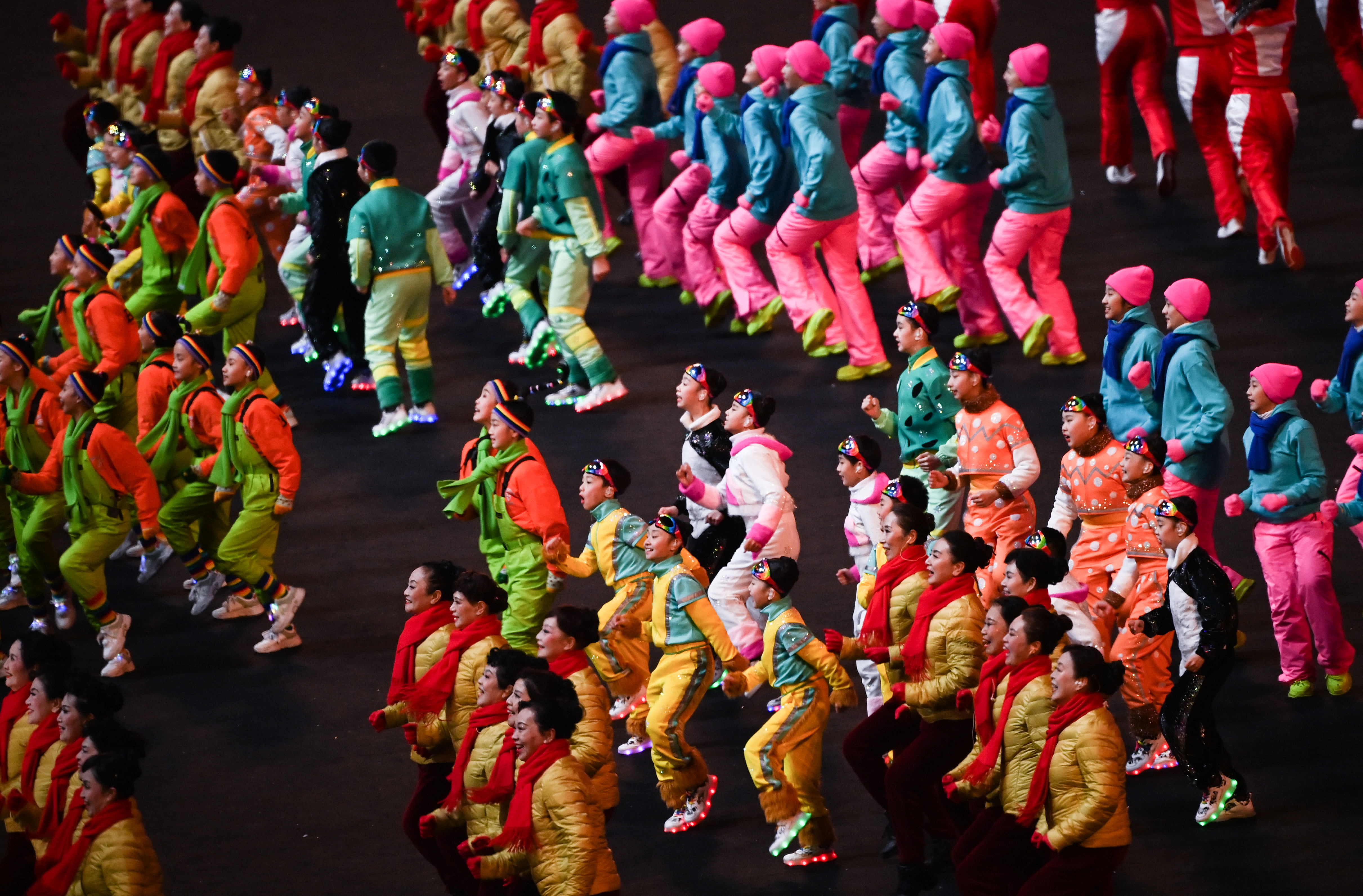 【各界羣衆參演熱場舞蹈】“在熱場環節,從5歲的小朋友到大中小學生,再到70多歲的老年模特隊齊上陣,用百姓喜聞樂見的廣場舞,展現新時代中國人民的精神面貌和喜迎新春的歡慶氣氛。”張藝謀介紹,按慣例,熱場環節基本是“串燒表演”。“但這次我們打破常規,參演者不需要統一着裝,而是穿上自己喜歡的衣服開心表演,盡情表達普通百姓的真摯情感,讓全世界感受歡樂祥和的中國年味和冬奧激情。”