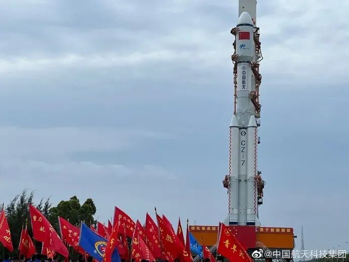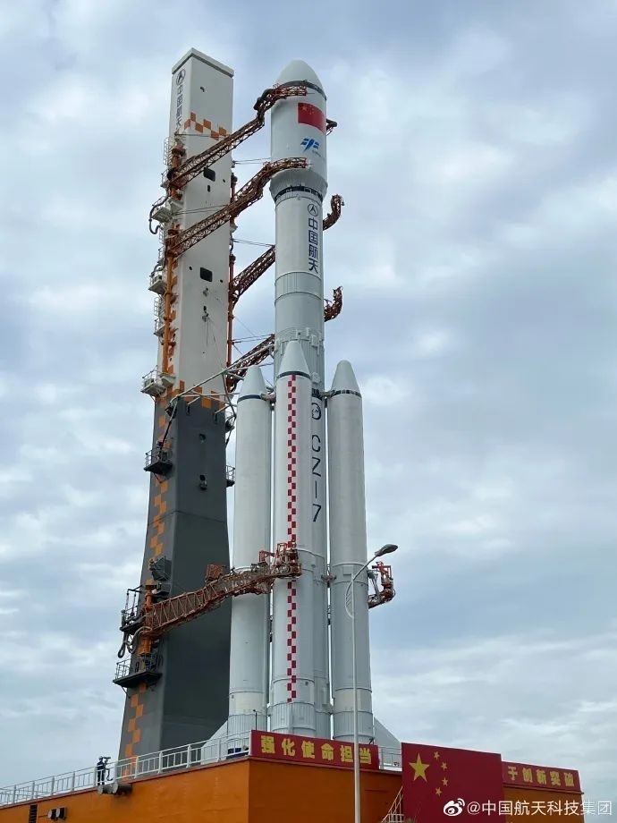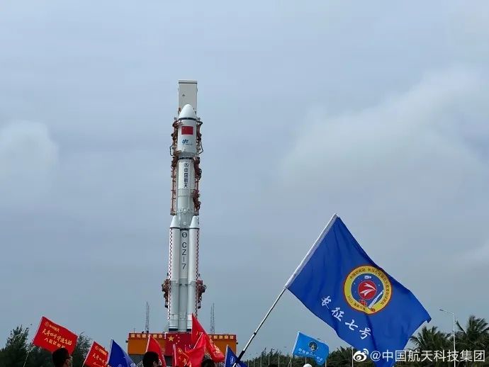 執行此次發射任務的長征七號遙五運載火箭此前完成出廠前所有研製工作後,於4月11日安全運抵文昌航天發射場。之後,長征七號遙五運載火箭與先期已運抵的天舟四號貨運飛船一起按計劃開展發射場區總裝和測試工作。