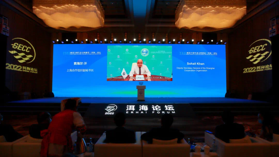 在主題演講環節,多位國內外嘉賓圍繞論壇主題進行發言。上海合作組織副秘書長索海爾·汗在線上主題演講中指出,上合組織成員國高度重視加強在環境保護、生態安全、防範氣候變化不利影響等領域的合作。期待通過更多對話溝通渠道,增進各國在環境政策領域的經驗交流,加強在綠色發展、防治環境汙染、適應氣候變化、保護生物多樣性等領域的合作。