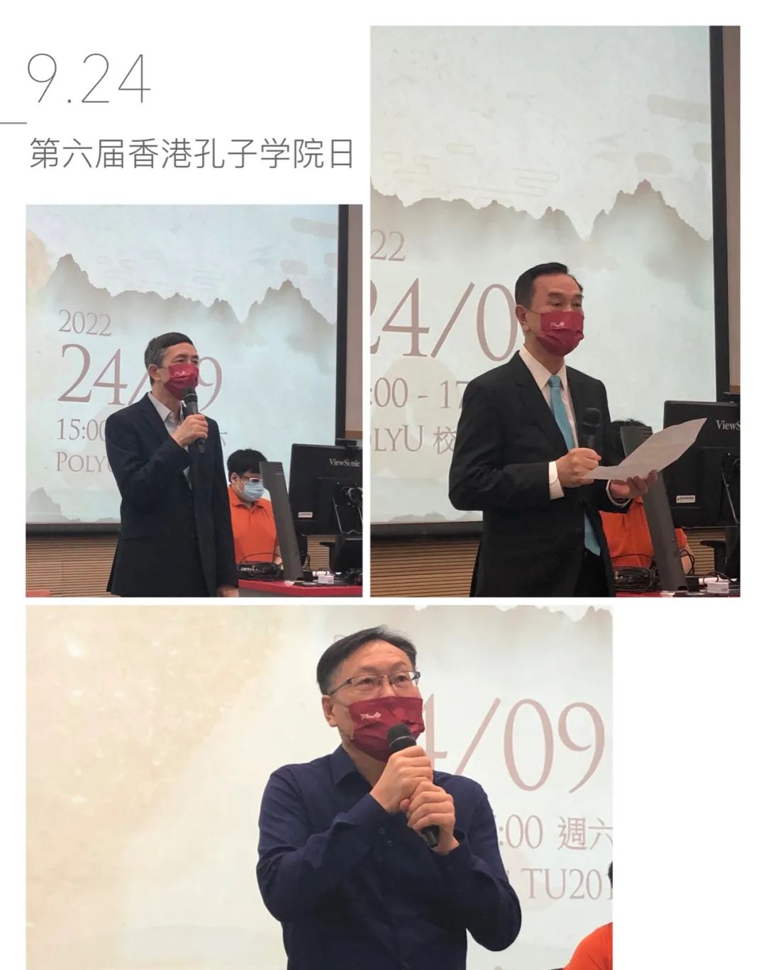 在開幕式上,香港孔子學院院長韓孝榮教授、理事長朱鴻林教授以及香港理工大學人文學院院長李平教授為活動致辭香港理工大學人文學院院長李平指出,香港的孔子學院不同於外國的孔子學院,有其特殊的意義。香港的孔子學院肩負重要的任務,它立足香港,背靠祖國,面向世界,不僅推動中華傳統文化知識在香港的傳播,還給外籍人士提供了了解中華傳統文化的機會。他說,香港是中西方文化交匯的國際化大都市,起到了中西方文化交流的橋梁作用,香港孔子學院推廣中華傳統文化走向國際,增進中西的交流,交互與融合,可謂意義重大。
