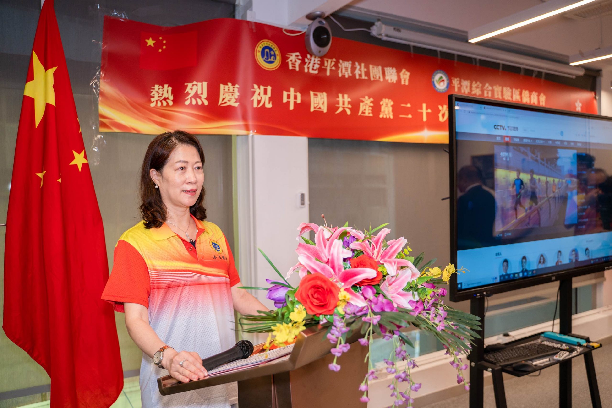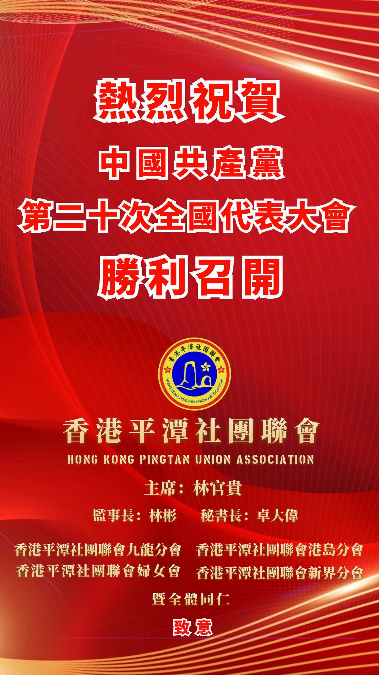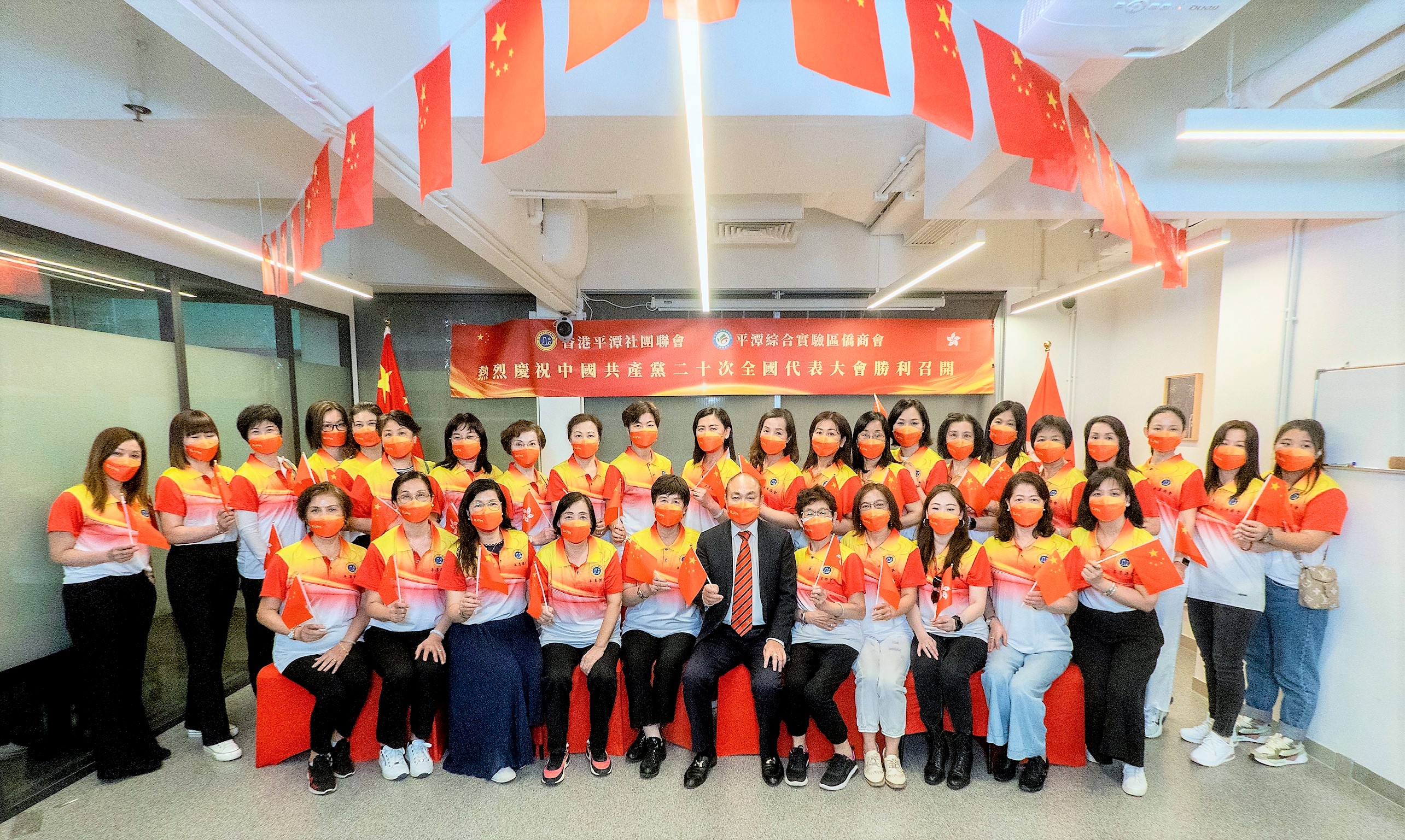 香港平潭社團聯會主席林官貴,名譽主席徐蘭芳,周進強,常務副主席吳巧芳、曾華恩、名譽顧問兼九龍分會會長薛由欽,副主席兼婦女會會長林美美,副主席兼婦女會監事長王賢蓮、副主席黃智雲、林晉賢,新界分會監事長楊仕銀、秘書長林巧紅,九龍分會秘書長李小清,九龍分會常務副會長薛來森,婦女會榮譽會長林華玉、林梅雲、黃文青,婦女會常務副會長劉秀嵐,聯會青年工作部部長林宇鵬,會員發展部部長王成忠,會員福利部部長張向太,聯會副秘書長王增雲、林堅、林心芳及各分會副會長、鄉親會員代表等出席收看二十大開幕會直播。