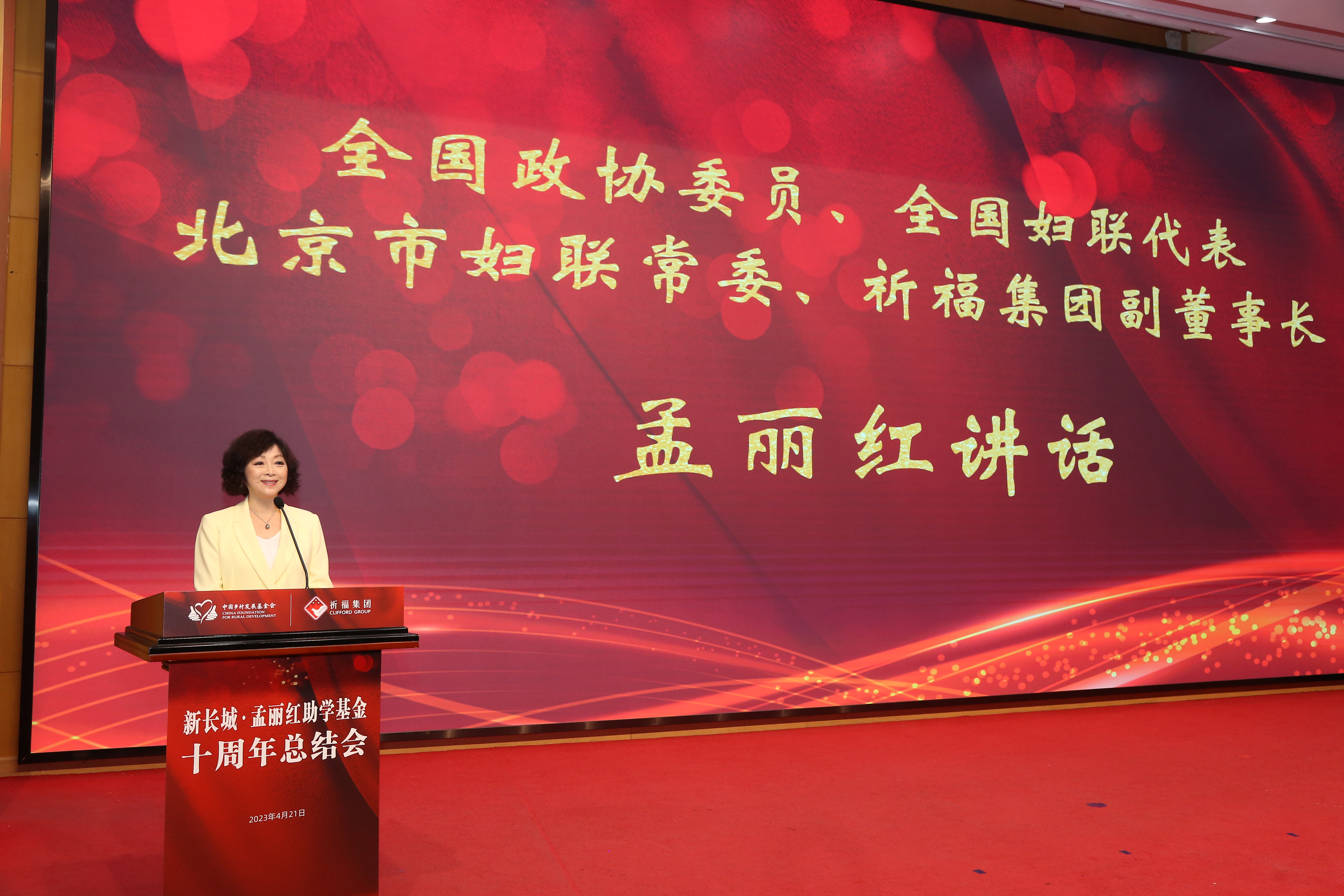 4月21日下午,由中國鄉村發展基金會(原中國扶貧基金會)舉辦的“新長城·孟麗紅助學基金十周年總結會”在北京圓滿舉行!