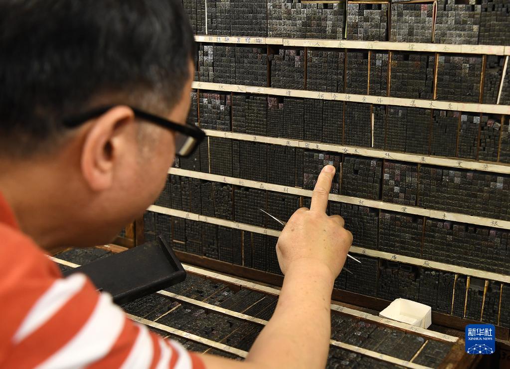 3月30日,任偉生在字盤中檢字。新華社記者 陳鐸 攝20世紀五六十年代,香港印刷業開始騰飛。中環和上環一帶商舖、銀行林立,對發票、合同、信封、信紙的需求很大,活字印刷因而興盛。