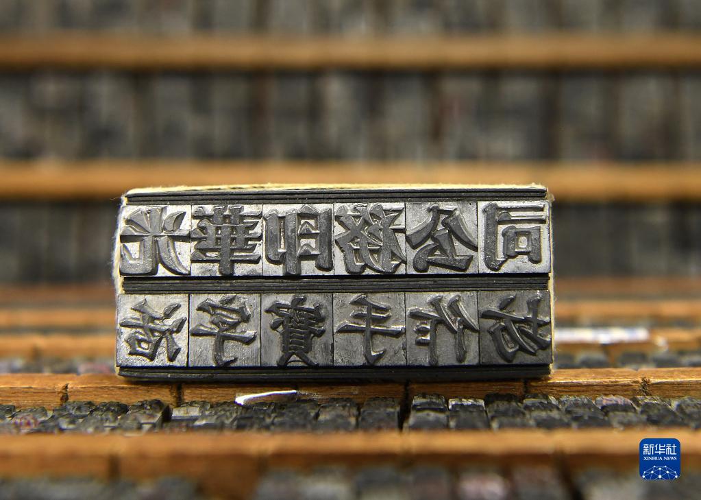 這是3月30日在光華印務公司拍攝的用不同鉛質字粒擺放的“光華印務公司 活字寶手作坊”字樣。新華社記者 陳鐸 攝到20世紀九十年代中期,香港四大鑄字公司相繼結業。 “排一個版如果需要一百個字粒,只要缺少一粒,那就沒辦法印。”字粒與活字印刷相伴相生,在唇齒相依的產業鏈中,鑄字公司的關停對於活字印刷店鋪來說,無疑是“滅頂之災”。