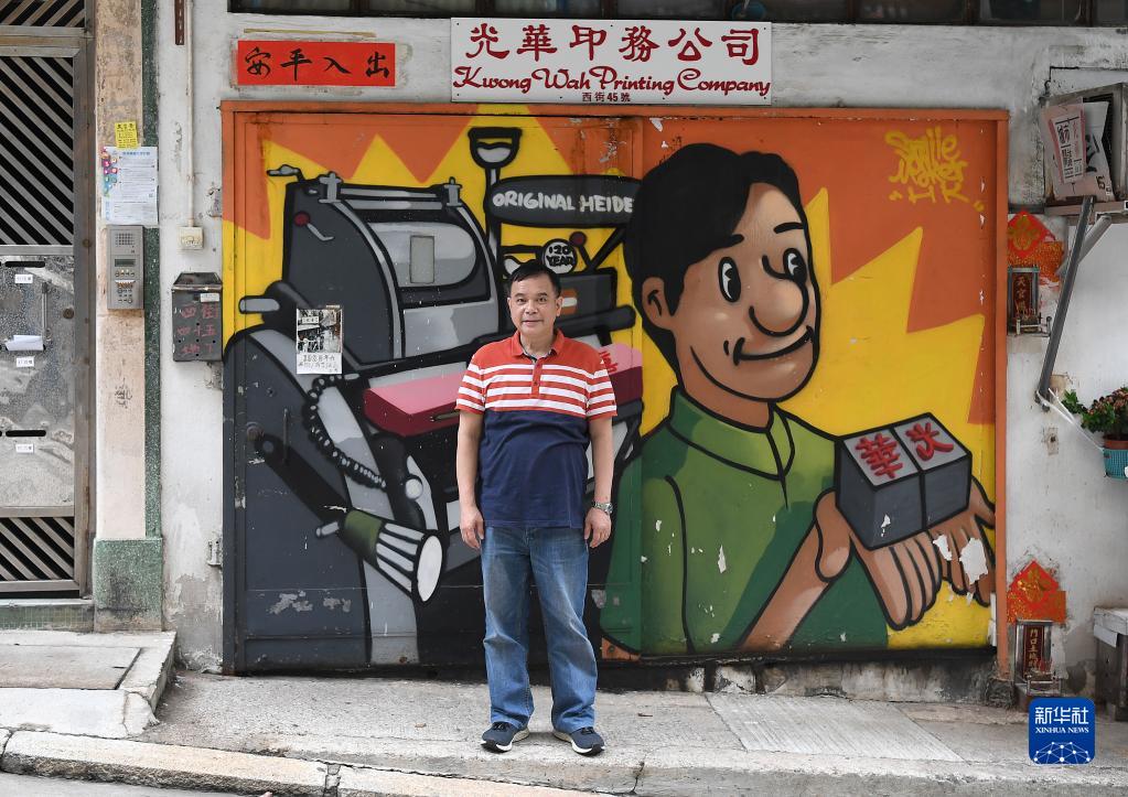 3月30日,任偉生站在光華印務公司門前。新華社記者 陳鐸 攝經過上環荷里活道,轉入西街斜坡,拾級而上,一家活字印刷鋪——光華印務矗立近70年。這家印刷舖的故事,也是香港活字印刷行業發展變遷的縮影。