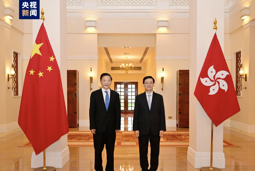 6月29日,香港特別行政區行政長官李家超在香港禮賓府會見中宣部副部長、中央廣播電視總台台長慎海雄,雙方就進一步深化合作進行交流。