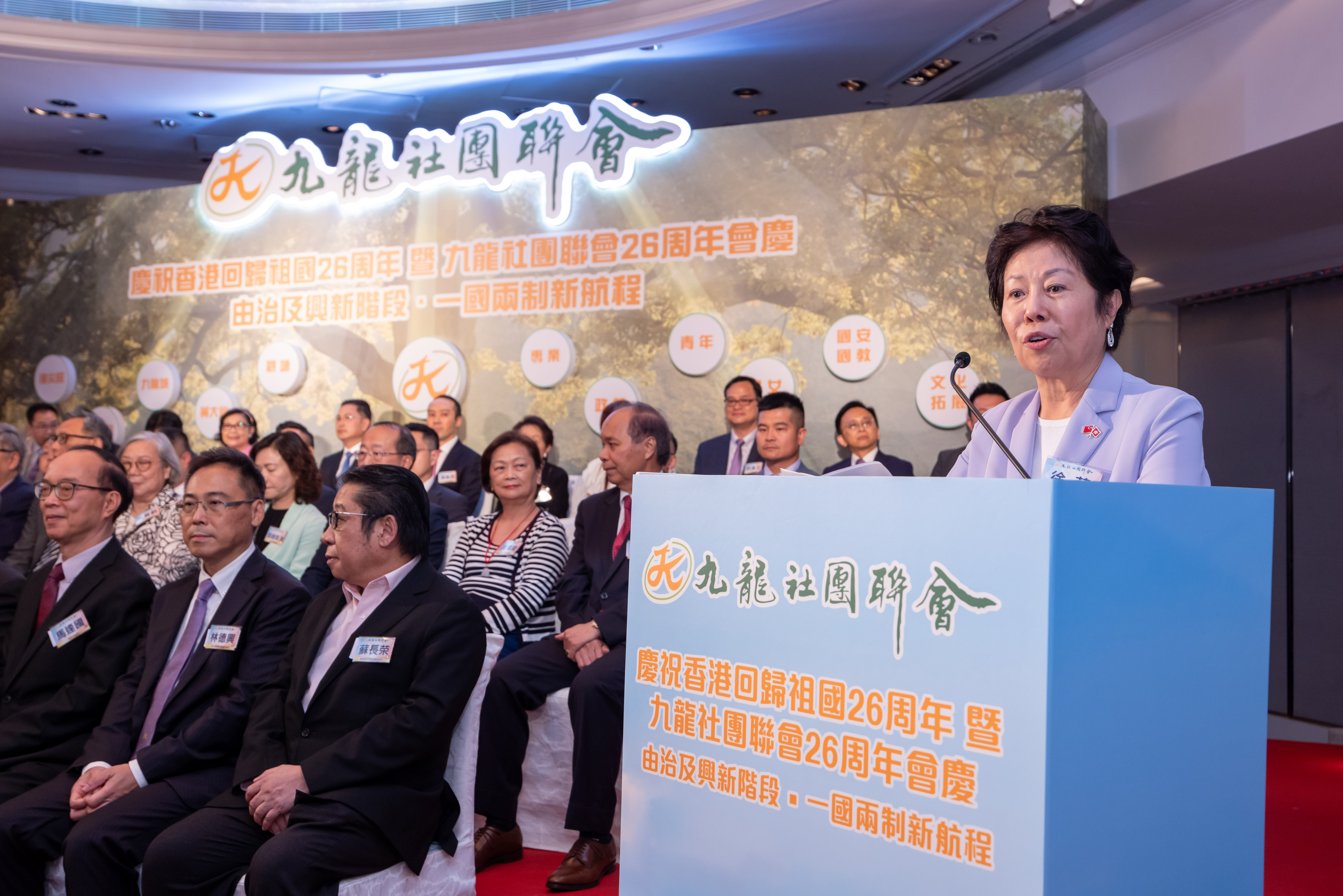 九龍社團聯會於香港回歸祖國同年成立,與香港特別行政區共同成長。九龍社團聯會於2023年6月27日假美麗華酒店完滿舉辦「慶祝香港回歸祖國26周年暨九龍社團聯會成立26周年會慶」,理監事仝人與各界友好聚首一堂,共慶盛典。活動邀請了特區政府政務司司長陳國基、中聯辦九龍工作部郭亨斌部長、行政會議非官守議員張宇人、保安局副局長卓孝業、民政及青年事務局副局長梁宏正、民政事務總署署長張趙凱渝、九龍社團聯會首席會長連浩民、會長王惠貞、理事長徐莉及常務副理事長林德興等嘉賓蒞臨擔任典禮的主禮嘉賓。