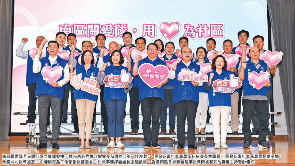 行政長官李家超在去年施政報告中提出成立“地區服務及關愛隊伍”(關愛隊),凝聚社區資源和力量,支援政府地區工作和加強地區網絡。南區關愛隊於四月三十日舉行誓師典禮後,轄下的17支關愛隊小隊隨即正式起動,全力投入服務社區。