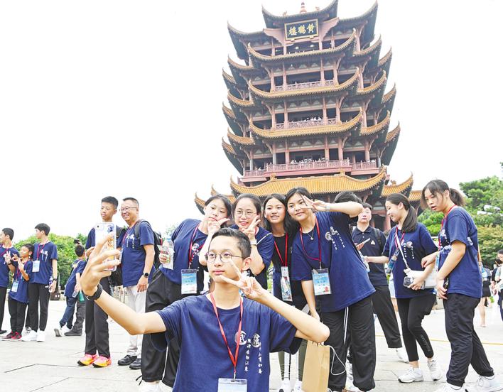 8月21日,參觀交流團來到武漢黃鶴樓,團員們爭相留影(湖北日報全媒記者 李溪 攝)跨越山海,奔赴而來。