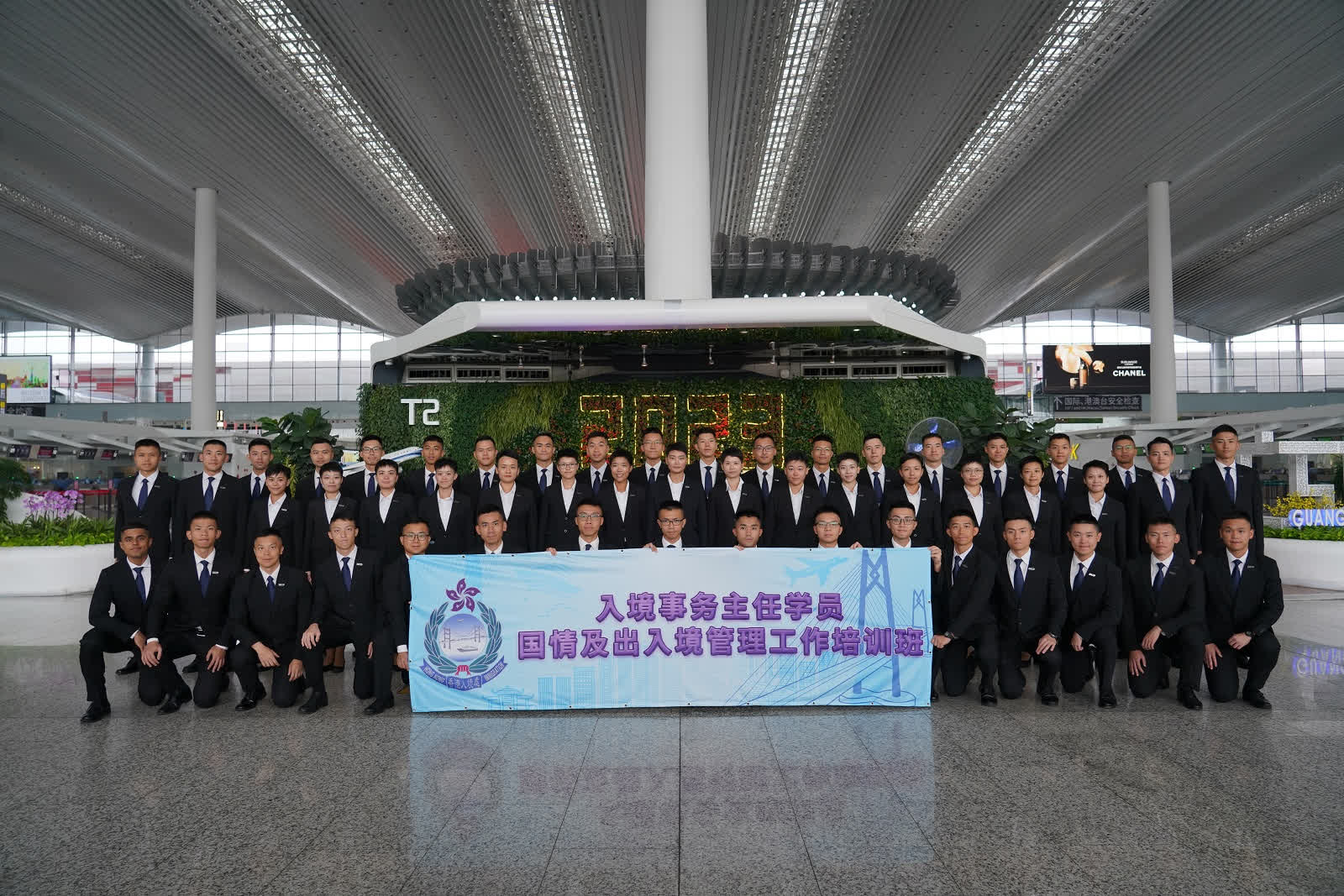期間學員接受中式隊列訓練、考察廣州白雲機場指揮中心,及參訪廣東省國家安全教育基地和廣州市出入境辦證大廳等。