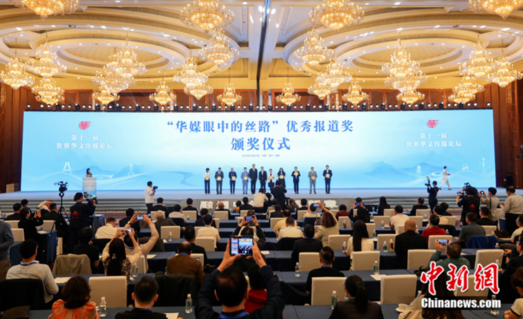 今年是共建“一帶一路”倡議提出十周年,華文媒體充分報道了“一帶一路”倡議,涌現了一大批新聞佳作。中國新聞社與世界華文媒體合作聯盟組織開展“華媒眼中的絲路”報道及作品徵集活動,評選出20件優秀作品。“華媒眼中的絲路”優秀報道獎頒獎在閉幕式上舉行。