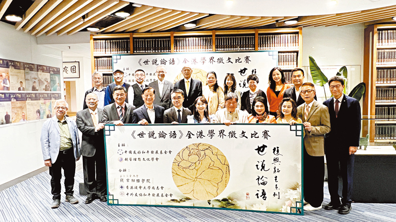 《論語》是儒家經典著作,是中華文化的瑰寶。為了鼓勵學生們多讀《論語》及培養寫作興趣 ,中國友好和平發展基金會聯同超藝理想文化學會主辦《世說論語》全港學界徵文比賽於11月24日舉辦了啟動儀式。歡迎全港大學和中小學生以《論語》為主題,闡發《論語》在日常生活中的啟發和實踐,得獎者可獲現金獎外,更將獲邀到北京出席頒獎典禮和參觀學習,感受歷史古都和全國文化中心。
