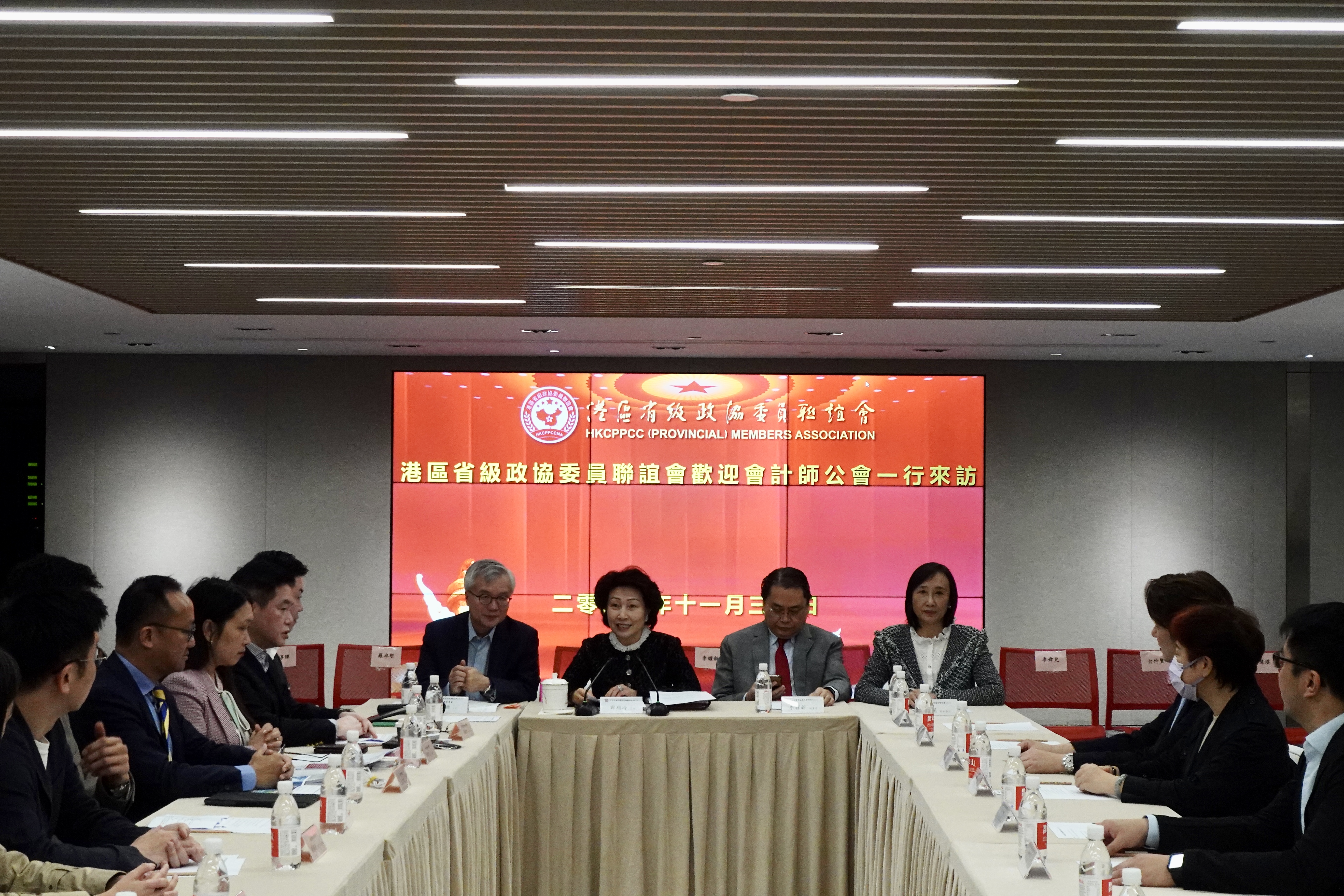 2023年11月30日下午,會計師公會成員煜榮控股有限公司財務總監周鎮忠、香港商界會計師協會會長羅卓堅、安永香港及澳門區主管合夥人李舜兒、中匯安達審計合夥人李淳暉、鐘港資本有限公司首席財務官及董事總經理白仲賢、金記控股有限公司創辦人及行政總裁謝海發、華潤創業有限公司稅務總監黃慧琪一行到訪港區省級政協委員聯誼會。港省聯主席鄭翔玲、副會長李耀新、副秘書長劉娟熱情接待,雙方進行交流座談。