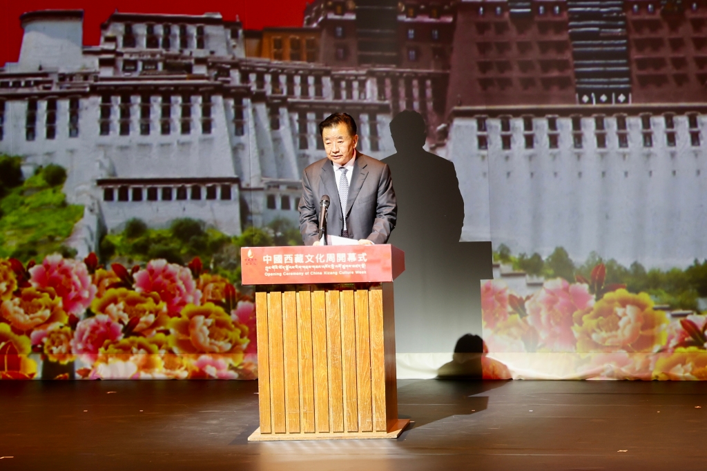 文宏武在致辭中指出,悠久燦爛的西藏文化是中華文明大家庭中不可分割的重要組成部分和中華文化寶庫中的瑰寶。此次“中國西藏文化周”的舉辦將多維度展現西藏文化的獨特魅力及傳承之美,增進香港同胞對雪域高原西藏的了解,推動西藏與香港在文化領域的交流與合作。紫荊文化集團將與香港各界人士一起推進香港文化建設,推出更多精品演出展覽。