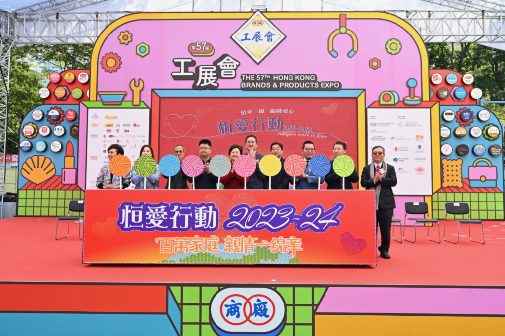 嘉賓合影“情牽一線”公益活動今年再度在工展會開幕,2023年12月16日中午在工展會場內大禮台舉行啟動禮。恆愛行動今年以“關愛社會”為主題,啟動禮後隨即在地區展開送贈愛心頸巾活動,旨在讓弱勢群體感受到社會的關愛。