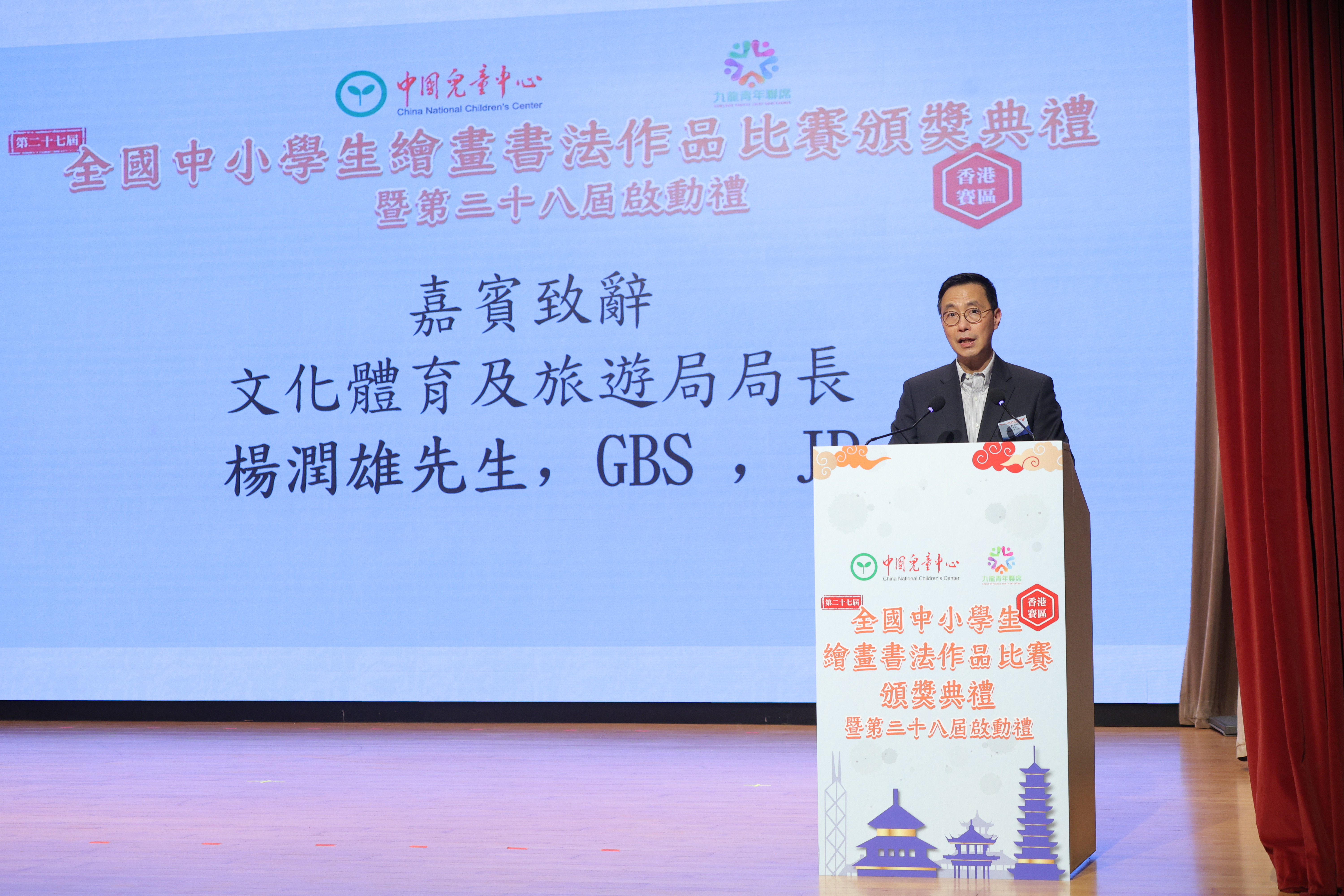 頒獎禮現場,文化體育及旅遊局局長楊潤雄祝賀各得獎學生,並感謝九龍青年聯席會議使此歷史悠久的國家級活動引入香港並大力舉行,為香港中小學生提供了一個難得的平台,使他們學習到中國文化及展現自身的藝術才華。期望各同學繼續從事各項創作,祝願第二十八的賽事更上一層樓,使更多青年人踏上文化之旅。