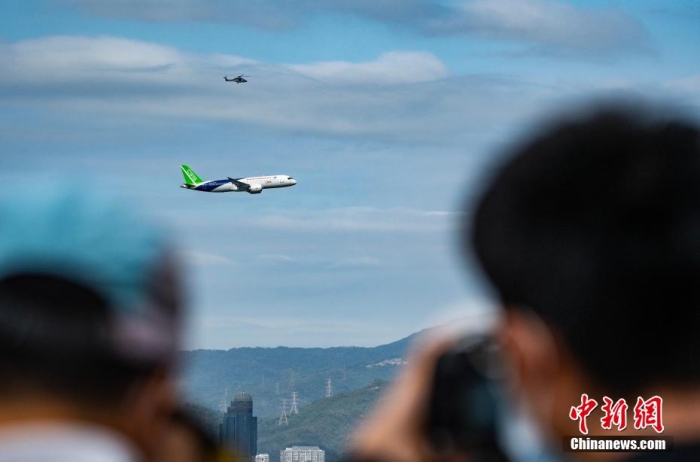 C919飛越維港上空 香港市民化身“追飛機的人”