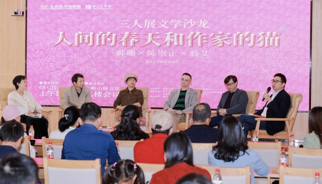 紫荊雜誌(記者彭彥)1月25日東莞報道:1月21日,“龘吉龘利——作家書畫迎春三人展”在嶺上美術館盛大開幕後,隨即舉行主題為“人間的春天和作家的貓”三人展文學沙龍。來自社會各界的作家詩人、藝術家、專家學者及文學、藝術愛好者們參加了沙龍活動。此次活動以文學與藝術的跨界合作為主題,聚焦創新與探索,為觀眾呈現了一場視覺與思想的盛宴。活動由青年作家及本次策展人許曉雯主持。
