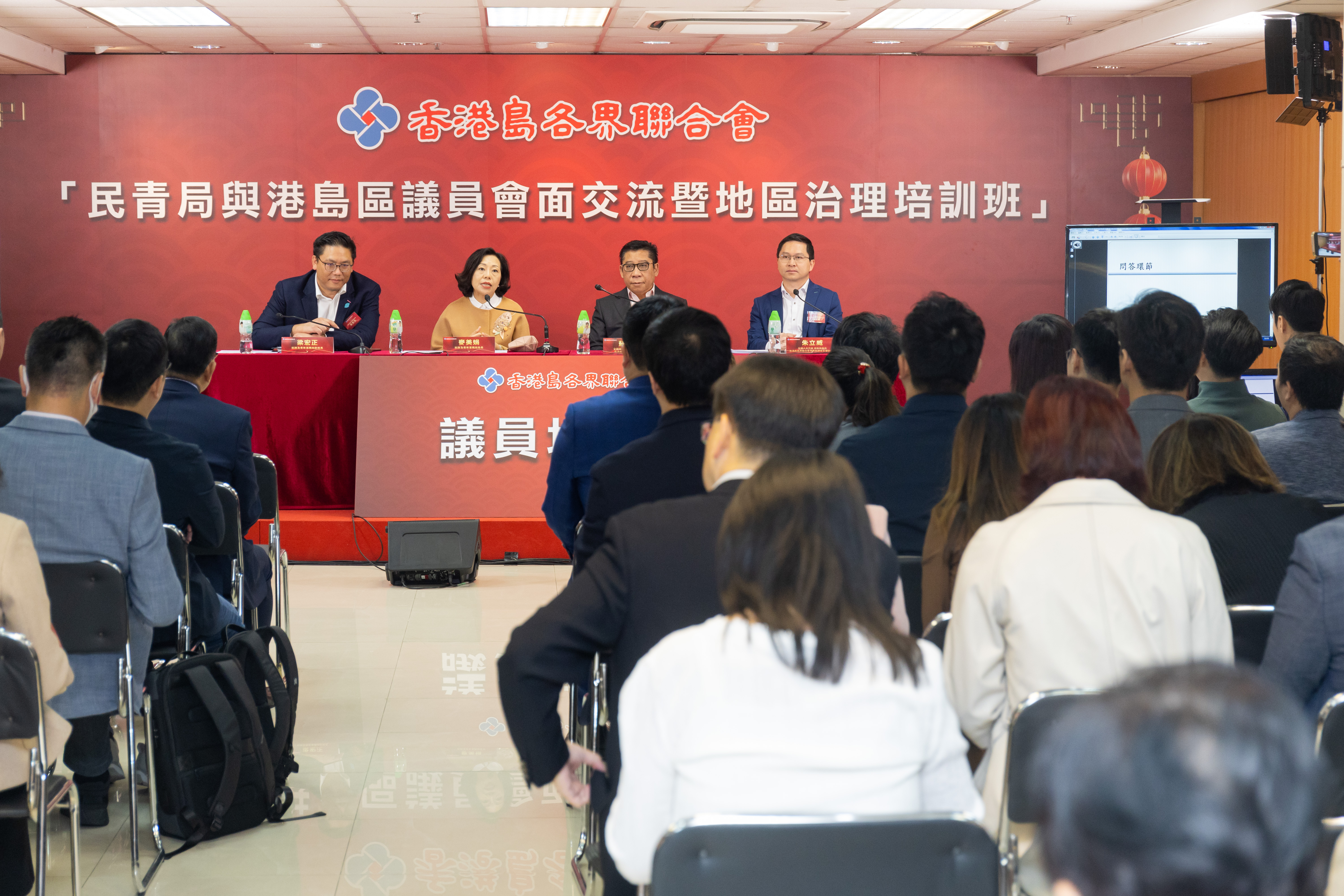 香港島各界聯合會(下稱港島聯)二月二十日舉辦“民青局與香港島區議員會面交流暨地區治理培訓班”,邀請了民政及青年事務局局長麥美娟、副局長梁宏正擔任主講嘉賓,向全體出席的港島區議員講解完善地區治理後的區議會定位和職能、區議會未來的重點工作等,並針對區議員圍繞區議會工作提出的問題進行了互動交流,讓各新任議員更充分掌握區議會的運作及常規,更好地履行區議員職責,提升地區治理效能。