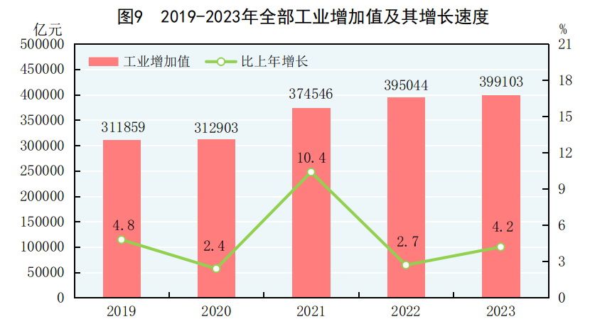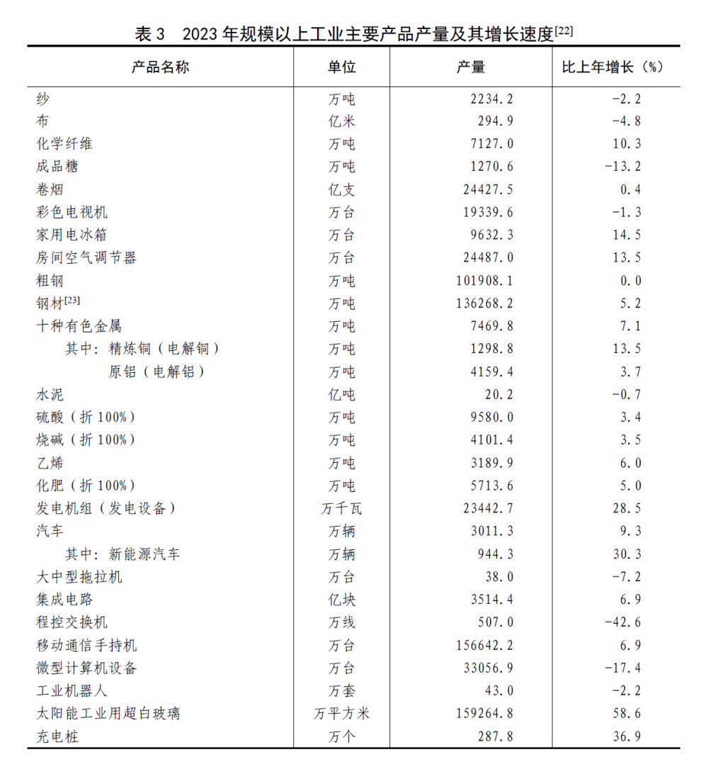 [11]由於統計調查制度規定的調查範圍變動、統計執法、剔除重複數據等因素,2023年規模以上工業相關指標增速及變化按可比口徑計算。
