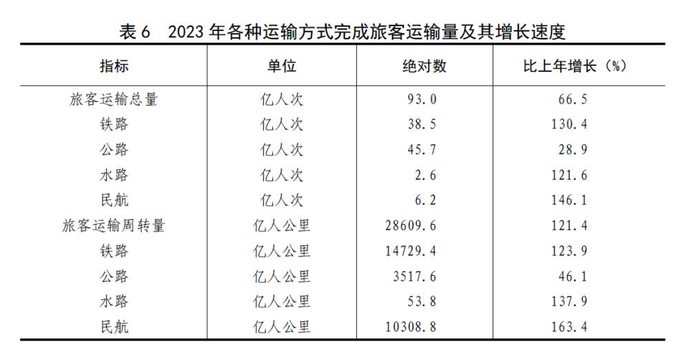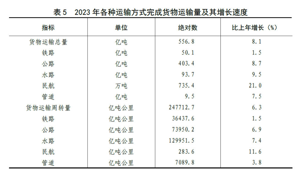 [28]貨物運輸總量及周轉量包括鐵路、公路、水路、民航和管道五種運輸方式完成量,2023年增速按可比口徑計算。