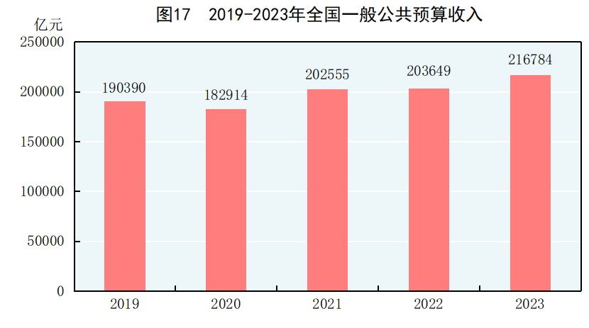 全年全國一般公共預算收入216784億元,比上年增長6.4%;其中稅收收入181129億元,增長8.7%。全國一般公共預算支出274574億元,比上年增長5.4%。全年新增減稅降費及退稅緩費超2.2萬億元。