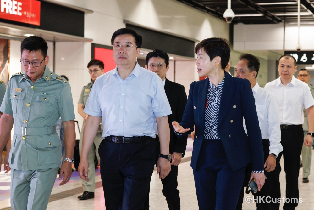 同日早上,國家海關總署廣東分署代表團到廣深港高速鐵路西九龍站實地考察香港海關在旅客清關工作的運作情況,並於明日(六月十三日)考察香港海關學院、昂船洲海關船隊基地及深圳灣口岸,了解有關人員訓練、貨物和旅客清關及海上執法的工作。