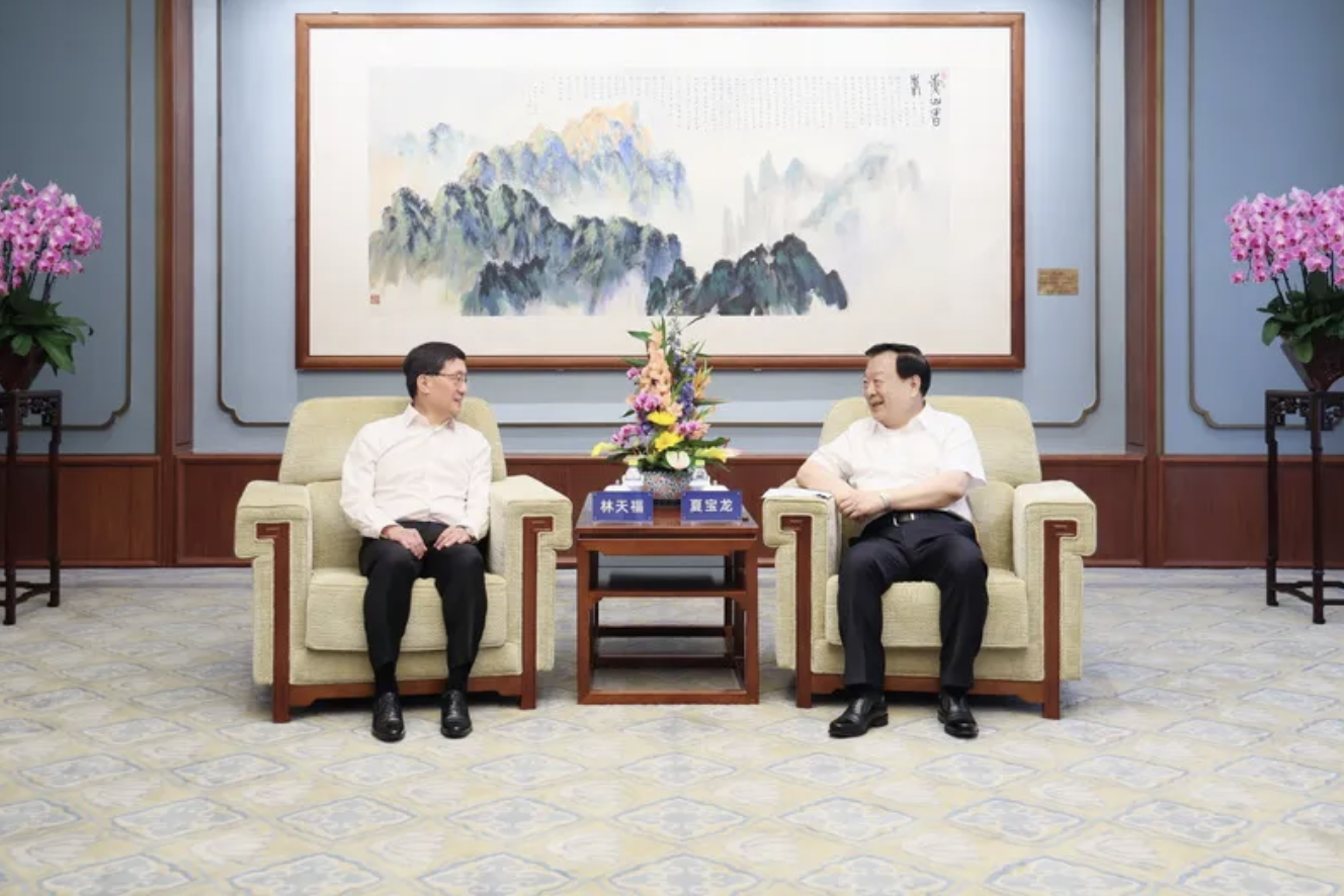 2024年7月4日上午,國務院港澳事務辦公室主任夏寶龍在北京會見香港機場管理局主席林天福一行。