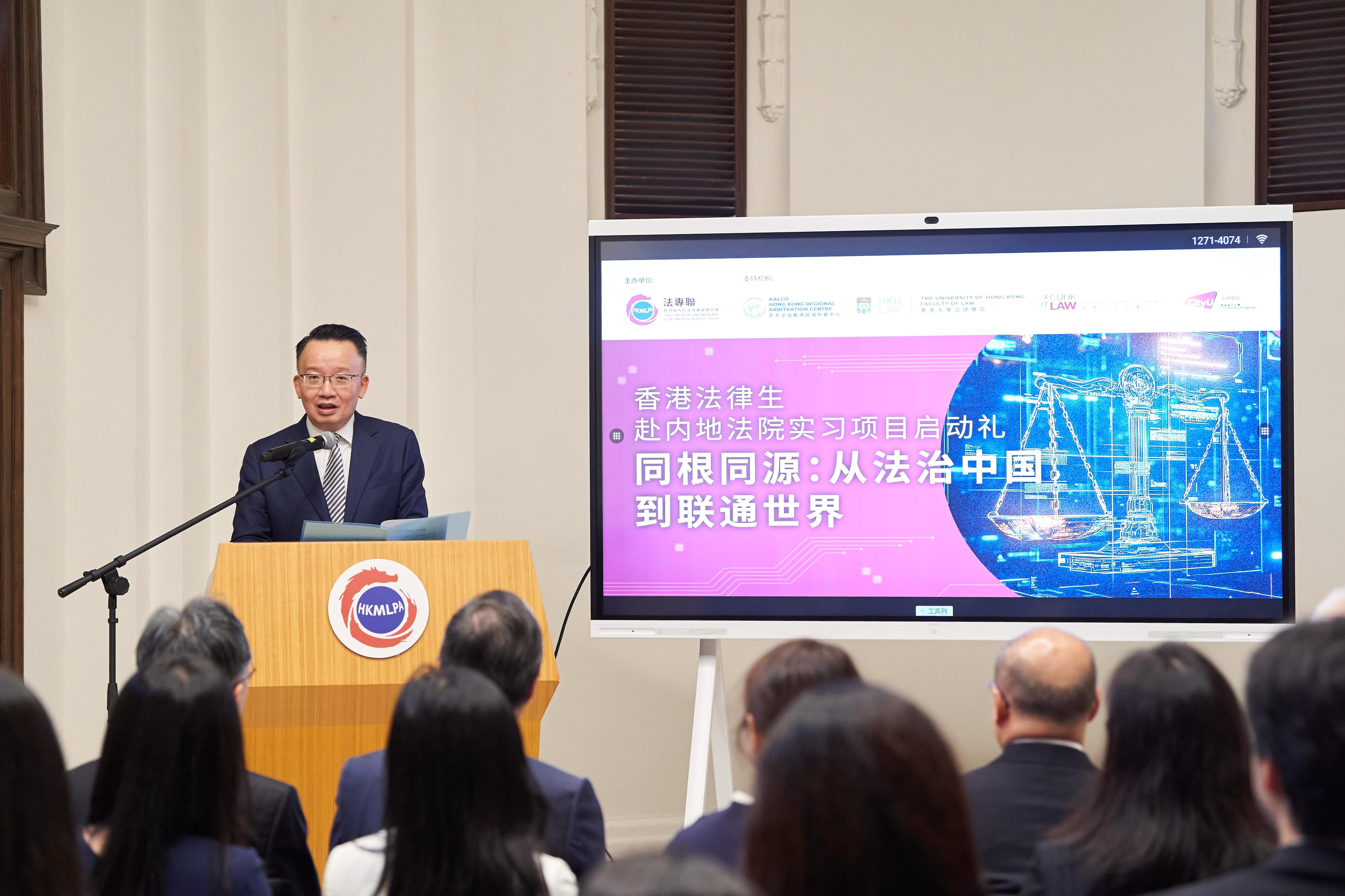 由香港與內地法律專業聯合會主辦的2025年內地法院實習項目,今日(4日)舉行啟動禮。香港特區政府律政司司長林定國、中央政府駐港聯絡辦法律部部長劉春華、香港終審法院常任法官林文瀚等出席。各位嘉賓肯定了促進兩地法律人才培養和流通的意義,他們鼓勵香港青年親身了解內地發展,勇於交流,傳承愛國愛港精神,為未來國家建設貢獻力量。