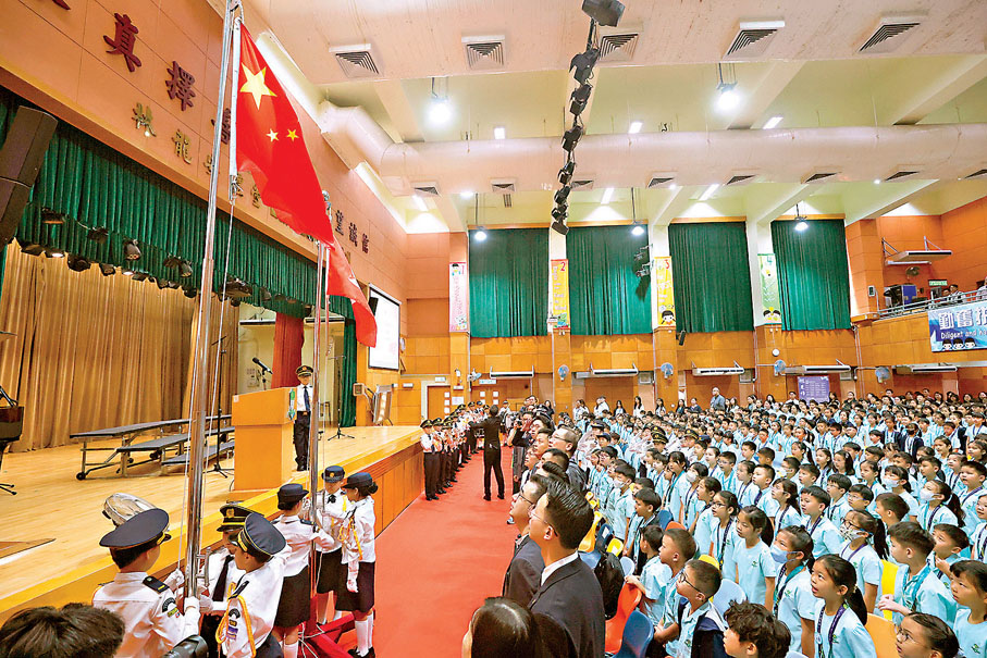 紀念抗戰勝利80周年聯校升旗禮昨晨於福建中學附屬學校開展主場活動,包括升旗儀式和“國旗下講話”,旨在引導全港師生深入認識抗戰歷史、緬懷先烈事跡,體悟中華民族不屈不撓的精神,從而銘記歷史、珍視和平,並進一步提升學生對國家民族的認同感、歸屬感、責任感與愛國情懷。