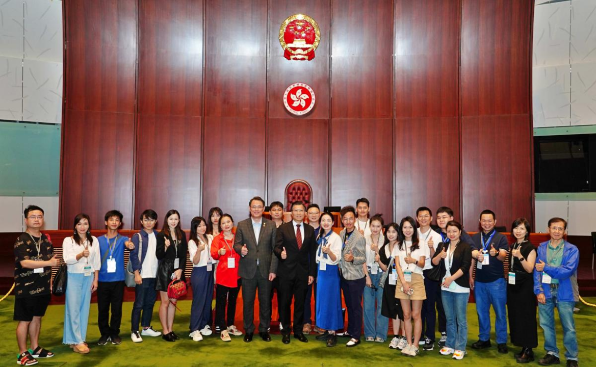為深入了解香港科創發展成就與未來規劃,參訪團一行前往立法會,與資訊界立法會議員邱達根、數碼港行政總裁鄭鬆巖展就“在港合作機遇與合作案例”主題開展熱切交流。