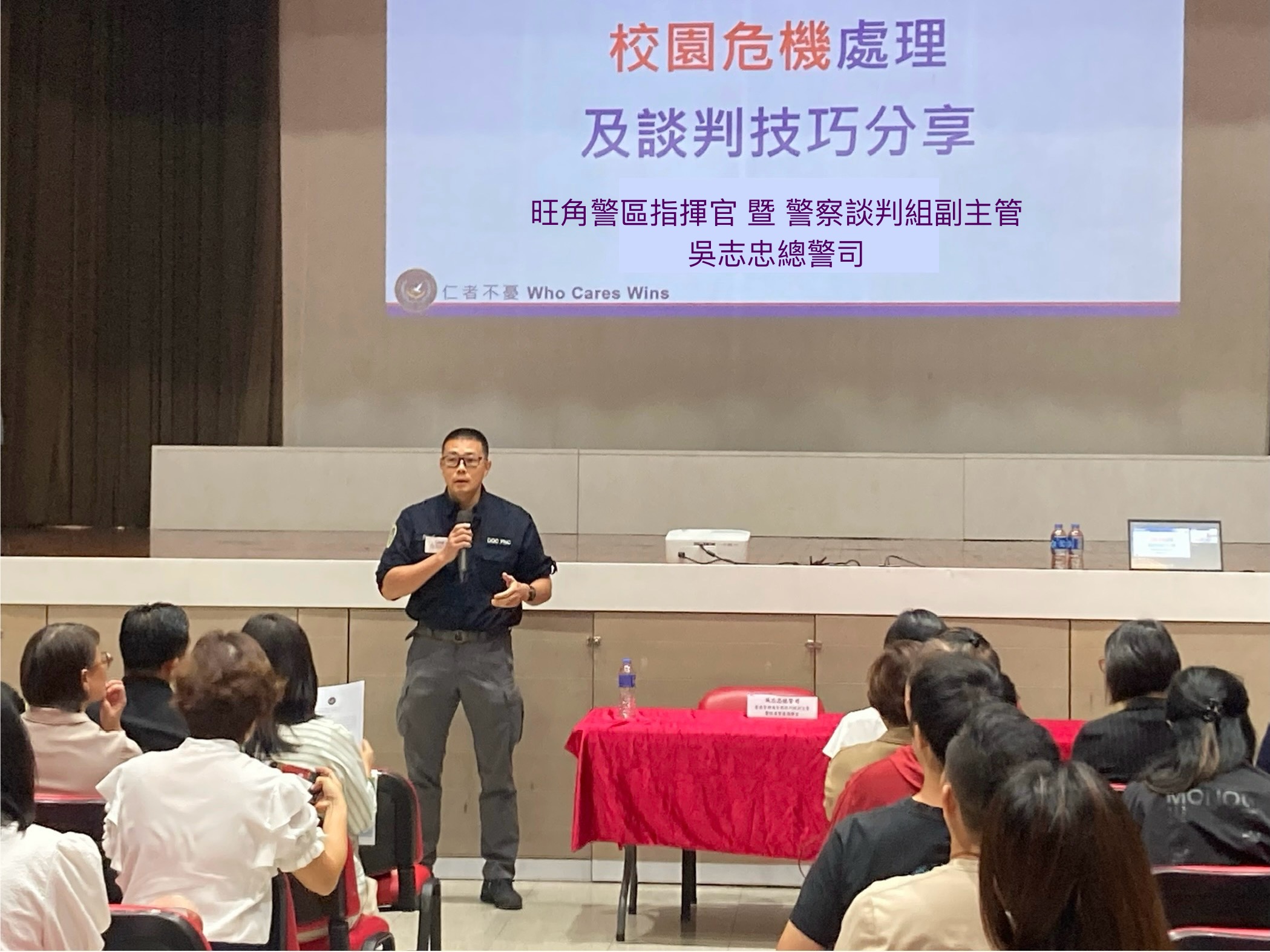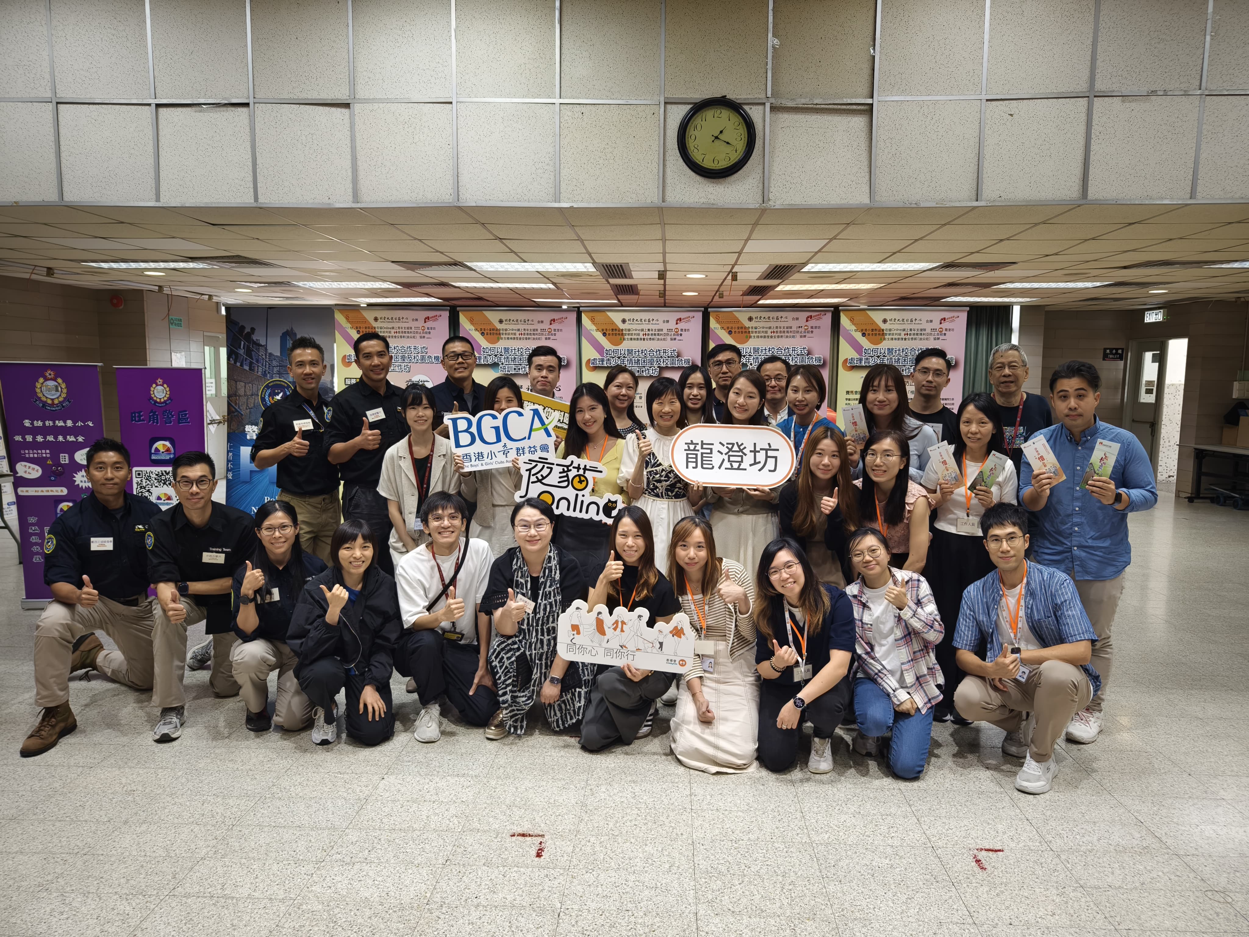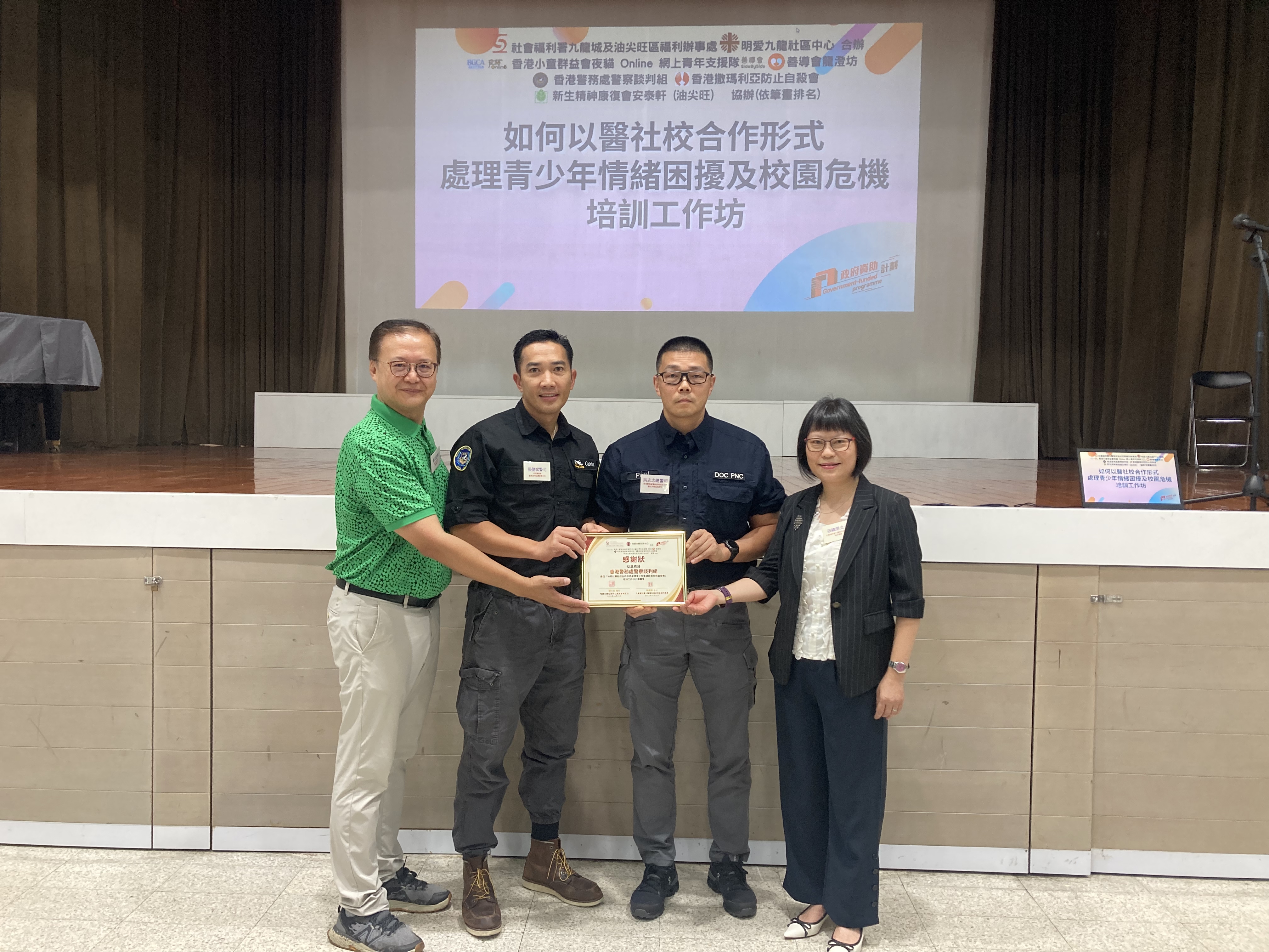 因應近年社會關注青少年精神健康情況,為加強學校及非牟利機構的社工面對青少年情緒困擾、自殺危機所需技巧,旺角警區聯同警察談判組、社會福利署、九龍醫院精神科、明愛九龍社區中心、香港小童群益會、香港撒瑪利亞防止自殺會、善導會及新生精神康復會,舉辦《如何以“醫·社·校·警”合作模式處理青少年情緒困擾及校園危機》,與近200位社工互動分享。