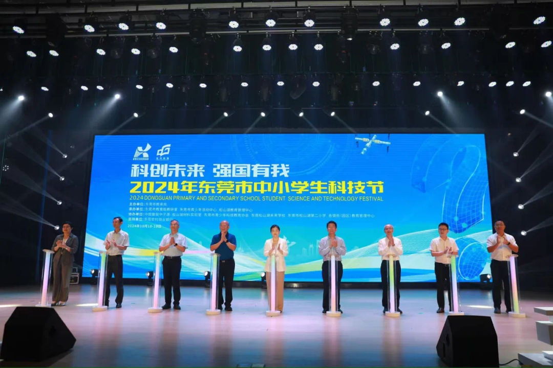 紫荊雜誌(記者彭彥)10月19日東莞報道: 乘廣東省科技大會召開的東風,10月18日下午,“科創未來,強國有我——2024年東莞市中小學生科技節”在鬆山湖未來學校拉開帷幕。東莞市副市長黎軍、中國教育科學研究院副院長於發友、中國教育科學研究院數字教育研究所副所長王學男、中國教育學會原副會長吳穎民、華南師範大學粵港澳大灣區教育發展高等研究院院長盧曉中、東莞市教育局局長葉淦奎以及市科技局、市科協、鬆山湖管委會等有關代表出席啓動儀式。來自香港、澳門、新疆、西藏、浙江、重慶、貴州、江西以及東莞、韶關、揭陽等十一地中小學師生代表共同參與本次活動。
