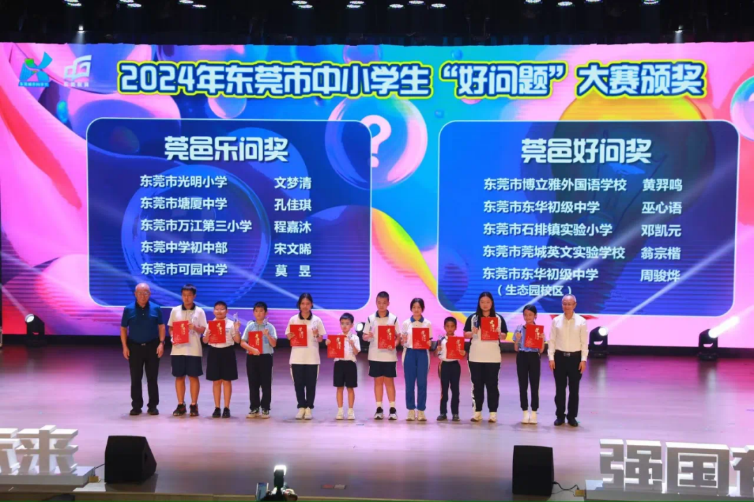 2024年東莞市中小學生科技節由東莞市教育局主辦,東莞農村商業銀行予以支持。啓動儀式上,2024年東莞市中小學生“好問題”大賽獲獎名單、東莞市首批10所人工智能應用實驗校名單、東莞市首屆中小學“十佳科創之星”評選結果先後公布。其中,今年7月啓動的“好問題”大賽聚焦數學與思維、生命科學、物質與化學、物理學、天文學、地球科學、技術與工程、人工智能等領域,按小學組、初中組、高中組進行問題徵集,最終20個“好問題”從近5000個投稿作品中脫穎而出,並在10月17日進行決賽現場答辯。