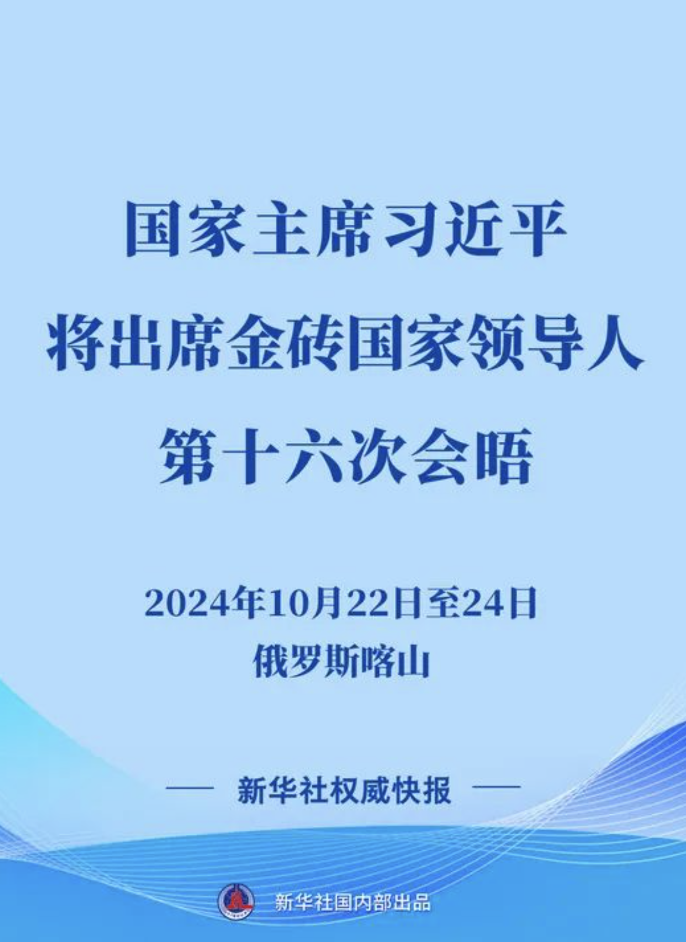 外交部發言人華春瑩10月18日宣布:應俄羅斯聯邦總統普京邀請,國家主席習近平將於10月22日至24日赴俄羅斯喀山出席金磚國家領導人第十六次會晤。