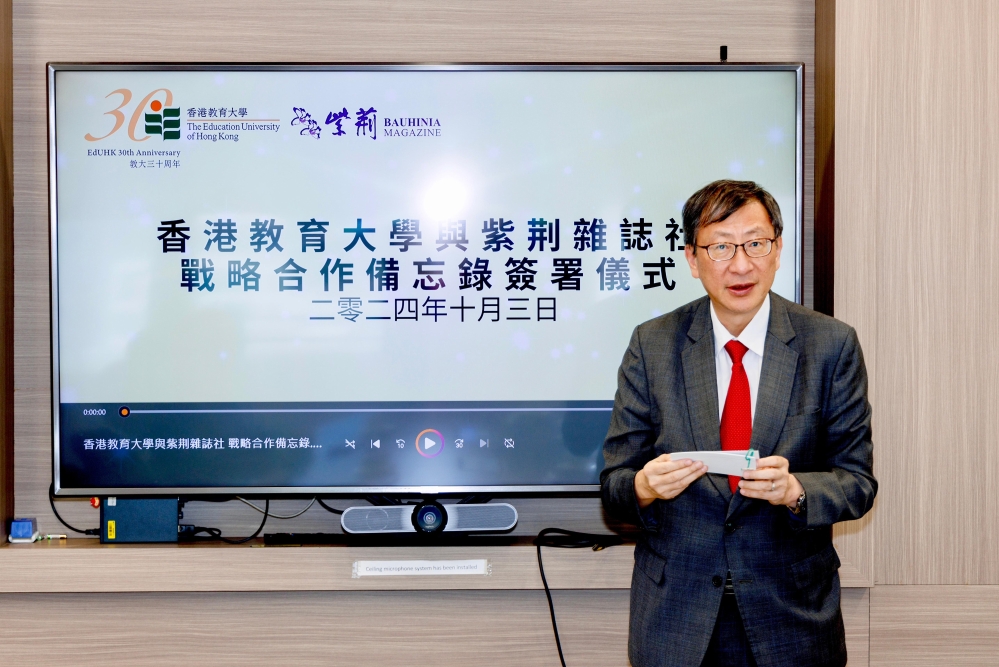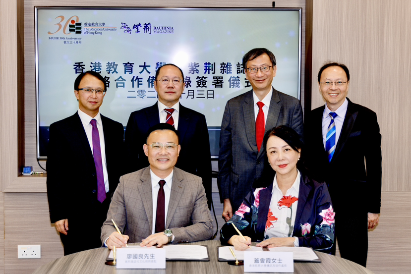 香港教育大學(教大)今日(10月3日)與紫荊雜誌社在教大簽署戰略合作備忘錄,雙方本著「優勢互補、合作共贏」的原則,通過加強教育與媒體的合作,共同推進教育的發展和人才的培養,為促進香港社會經濟的繁榮發展貢獻力量。