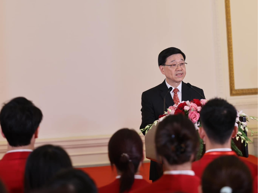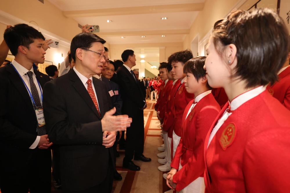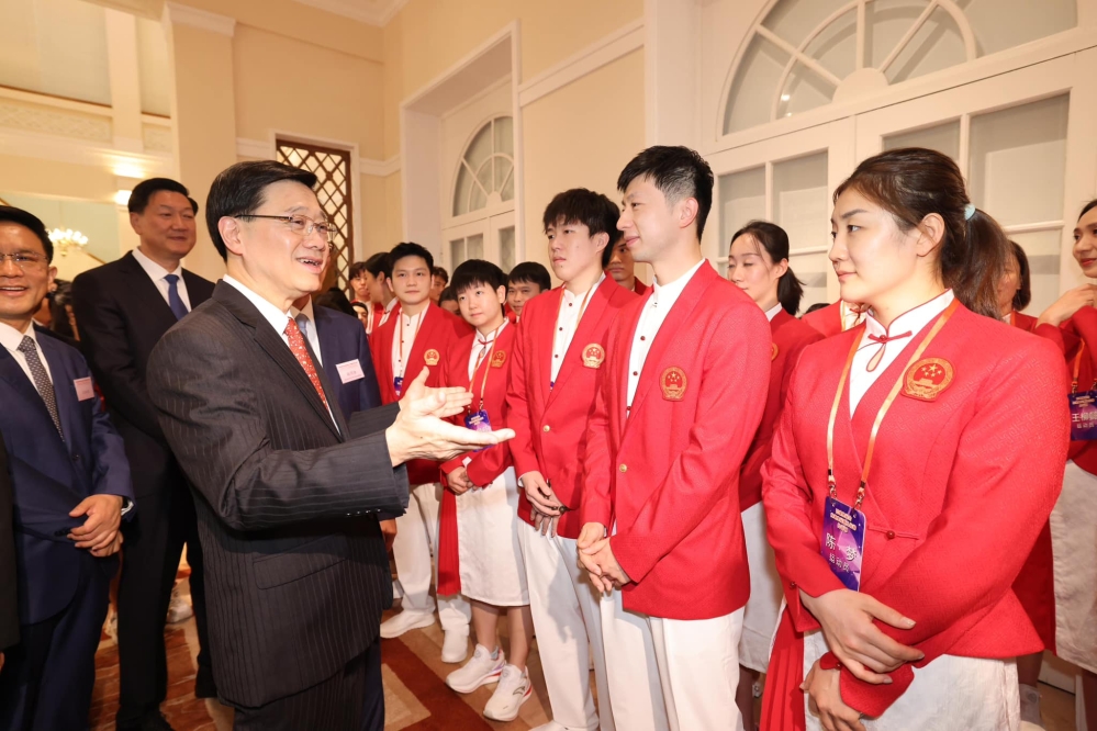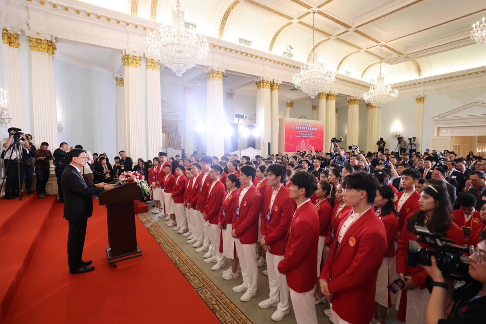 李家超向代表團成員表達他和香港市民對內地健兒的熱烈歡迎和愛戴。李家超指,大家都十分期待在未來三天的一連串活動中,欣賞他們示範表演羽毛球、體操、乒乓球、跳水及游泳等多個項目,以及與學生、市民和香港精英運動員互動交流。