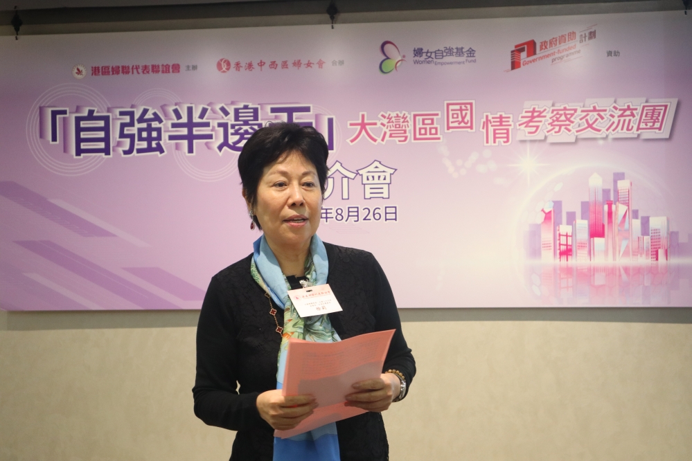 8月26日,由港區婦聯代表聯誼會主辦的「自強半邊天」——大灣區國情考察交流團成功舉辦簡介會。全國人大代表、全國婦聯執委、港區婦聯社會事務委員會主管副會長徐莉女士,BBS,JP蒞臨主持簡介會並致辭,合辦機構代表香港中西區婦女會主席、港區婦聯社會事務委員會主管副秘書長趙華娟區議員,MH出席活動。是次活動獲民政及青年事務局和婦女事務委員會撥款資助,並獲深圳市婦女聯合會大力支持,交流團將於8月29日至31日赴深圳開展考察學習。