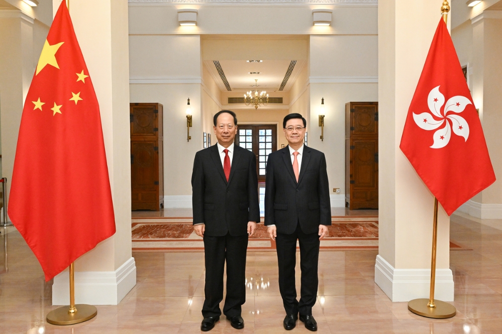 行政長官李家超熱烈歡迎中共中央政治局委員、全國政協副主席、中央統戰部部長石泰峰來港考察。李家超今日在禮賓府與石泰峰會面,兩人就共同關心的議題交換意見。