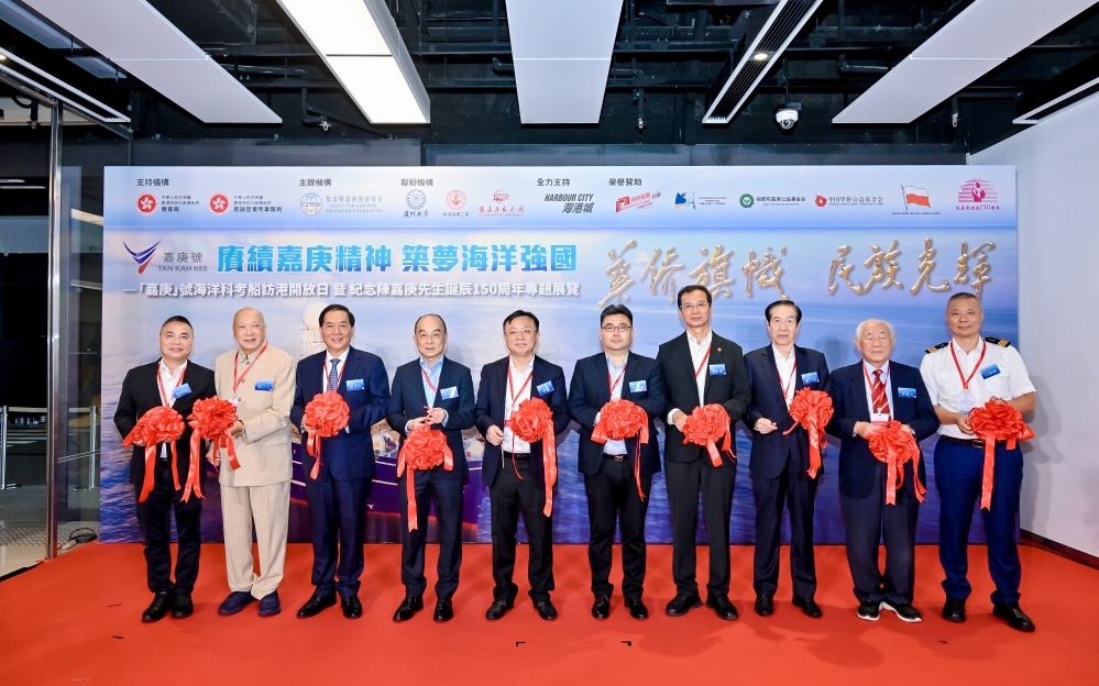 為熱烈慶祝中華人民共和國成立75周年、陳嘉庚先生誕辰150周年,由集友陳嘉庚教育基金主辦,香港特別行政區政府教育局、民政及青年事務局擔任支持機構,廈門大學、香港海員工會及陳嘉庚紀念館共同聯辦的「賡續嘉庚精神 築夢海洋強國 ——『嘉庚』號海洋科考船訪港開放日暨紀念陳嘉庚先生誕辰150周年專題展覽」於今日在尖沙咀海港城海運大廈碼頭舉行開幕禮。