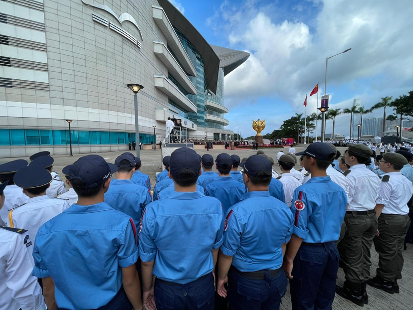 今年「七一」香港回歸祖國27周年,團員與消防處儀仗隊一同參與在金紫荊廣場舉行的升旗儀式,既體驗升旗儀式的莊嚴,亦感受到國安家安的重要。