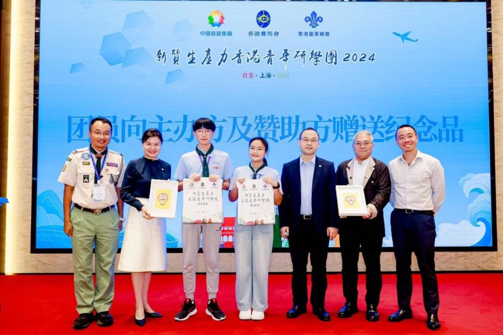 8月3日,由中國旅遊集團暨香港中旅集團(以下簡稱 “中旅集團”)主辦、香港賽馬會贊助、香港童軍總會協辦,並得到香港中聯辦青年工作部大力支持的“新質生產力香港青年研學團 2024”活動開營儀式在北京舉行。