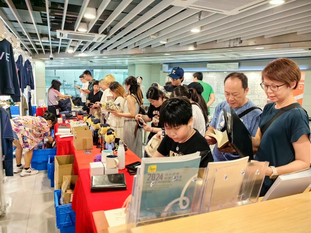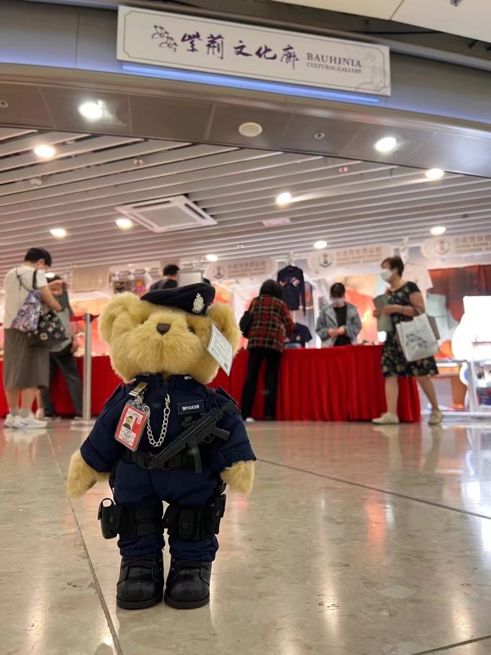 “快閃店”位於香港西九龍高鐵站GFM層G6鋪位,多款備受歡迎的禮品包括警察玩具熊、筆記簿、文件夾、磁石貼、鑰匙扣和服飾排列得琳琅滿目,吸引了大批市民和遊客圍觀選購,更有小朋友手持警察玩具熊做敬禮手勢,共同歡慶香港回歸祖國27周年這一特殊的日子。