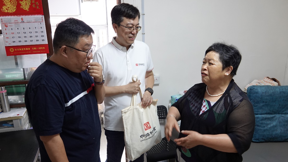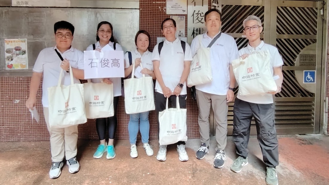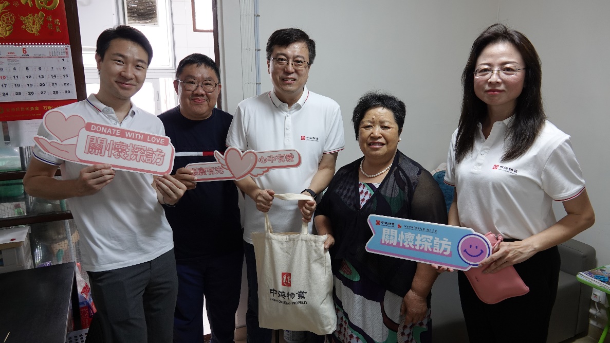 6月22日,“七·一”香港回歸紀念日前夕﹐中海物業義工分會攜備“中海愛心禮包”,在區議員吳任豐先生及社會公益團體的支持下,來到位於葵青區的公司在管項目石籬一邨,開展主題為“與照顧者同行”的義工探訪活動,向80多戶長者家庭送上關懷與祝福。中海物業集團副總裁王知剛先生、中海物業港澳公司副總經理劉文靜先生、以及港澳公司義工分會逾50名義工仝仁參與活動。