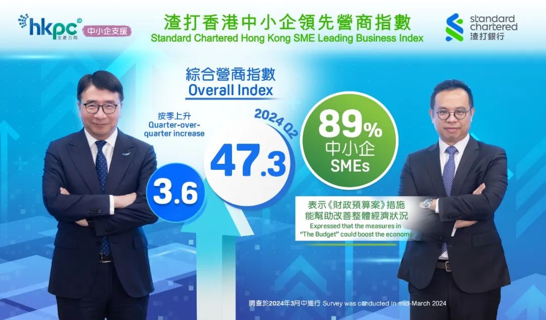 香港“生產力局·中小企支援”4月30日公布2024年度第二季“渣打香港中小企領先營商指數”(“渣打中小企指數”)調查結果,本季綜合營商指數較上季回升3.6至47.3,反彈至2023年第四季的水平(47.6)。五大分項指數1中,除了“招聘意向”錄得輕微下跌(51.3,-0.7)外,其餘四項均回升至2023年第四季的水平,包括:“環球經濟”(39.4,+9.1)、“營業狀況”(47.4,+7.2)、“盈利表現”(43.4,+6.3)及“投資意向”(49.5,+0.7),顯示香港中小企對本季的生意額的信心轉趨樂觀;經歷連續三季下跌的“環球經濟”也於本季停止跌勢,於本季錄得反彈,重回2023年第三季的水平(40.3)。